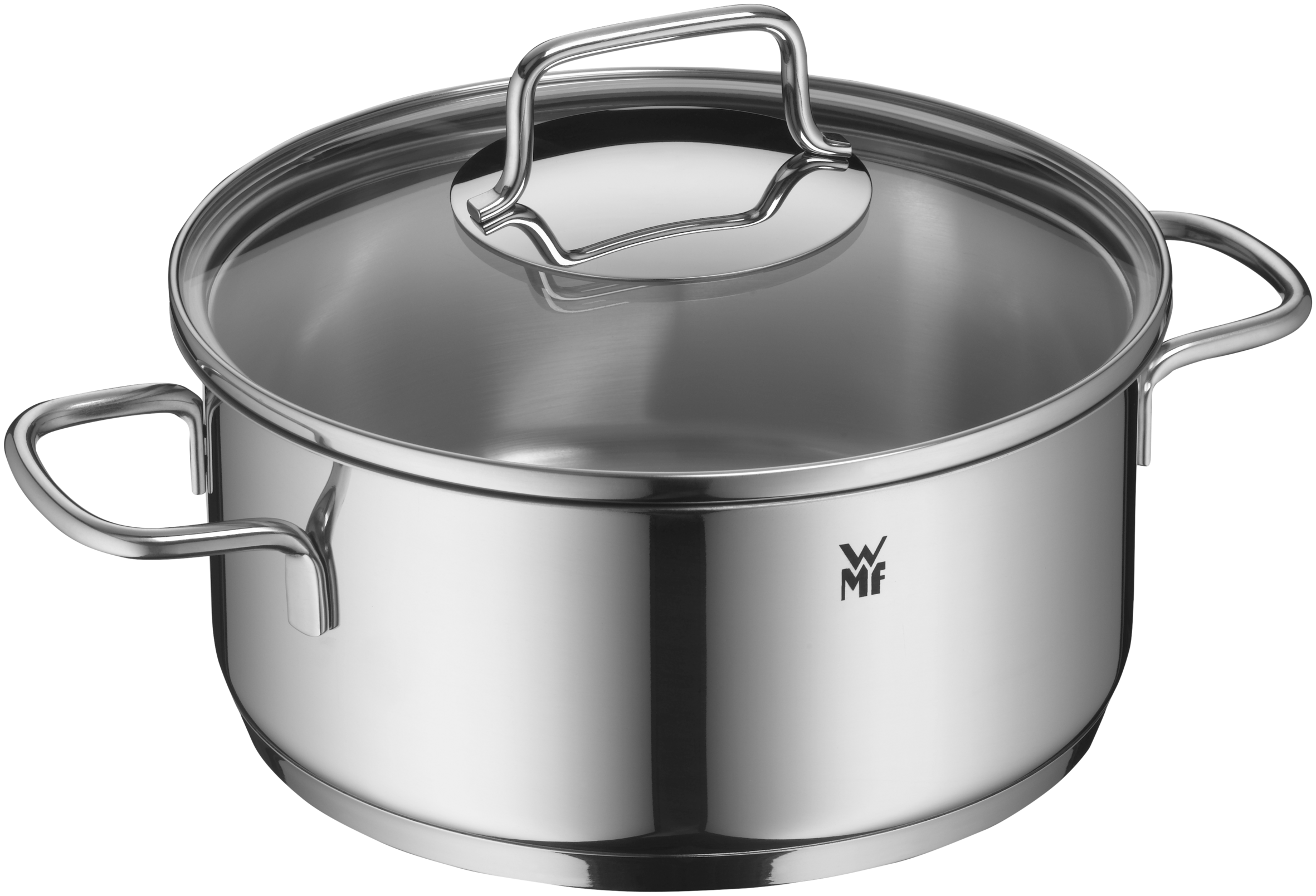 Kuhinjska posoda WMF Astoria: osupljiv dizajn z domiselnimi detajli. 5-delni komplet loncev in ponev. Zrcalno polirana obdelava in prefinjene linije za vrhunski izgled posode. Visokokakovostni toplotno odporni stekleni pokrovi za enostavno spremljanje med kuhanjem. Široki robovi za nalivanje brez kapljanja. TransTherm® osnova za optimalno porazdelitev in zadrževanje toplote, ki varčuje z energijo. Združljivo z vsemi kuhalnimi ploščami, vključno z indukcijo.