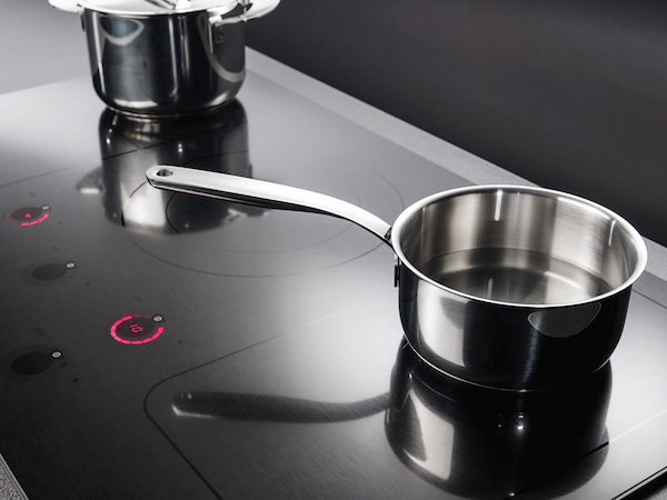 Ko je ponev postavljena na kuhalno polje, je ustrezna tipka osvetljena. Zdaj morate samo nastaviti želeno nastavitev toplote. Na ta način uporaba kuhalne plošče postane bolj intuitivna; vedno je jasno, kateremu nadzoru pripada kuhališče in kuhališča ni treba posebej vklopiti. Če lonec dvignete, se območje samodejno ustavi in ??nato znova zažene, ko lonec postavite nazaj.