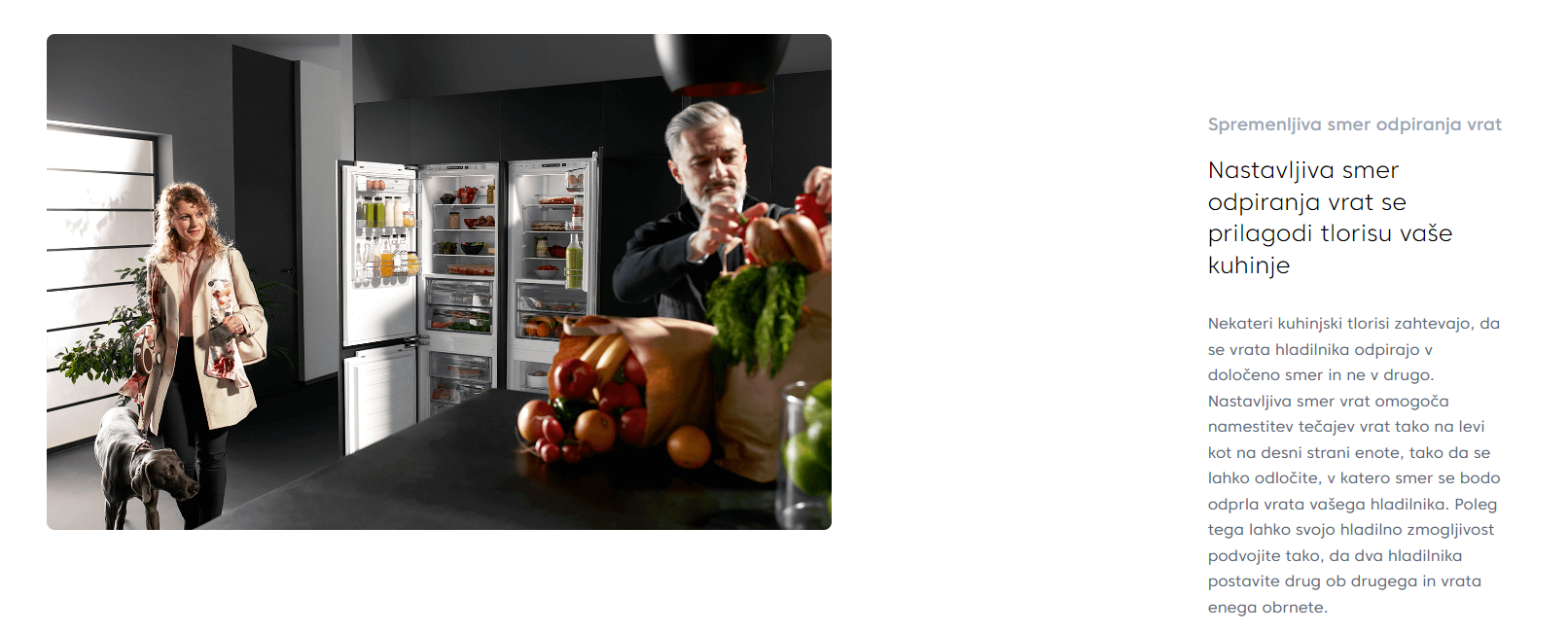 Spremenljiva smer odpiranja vrat je izjemno priročna funkcija, ki omogoča prilagoditev smeri odpiranja vrat glede na postavitev vaše kuhinje. S tem lahko enostavno prilagodite hladilnik vašim potrebam in okolju, v katerem je postavljen.