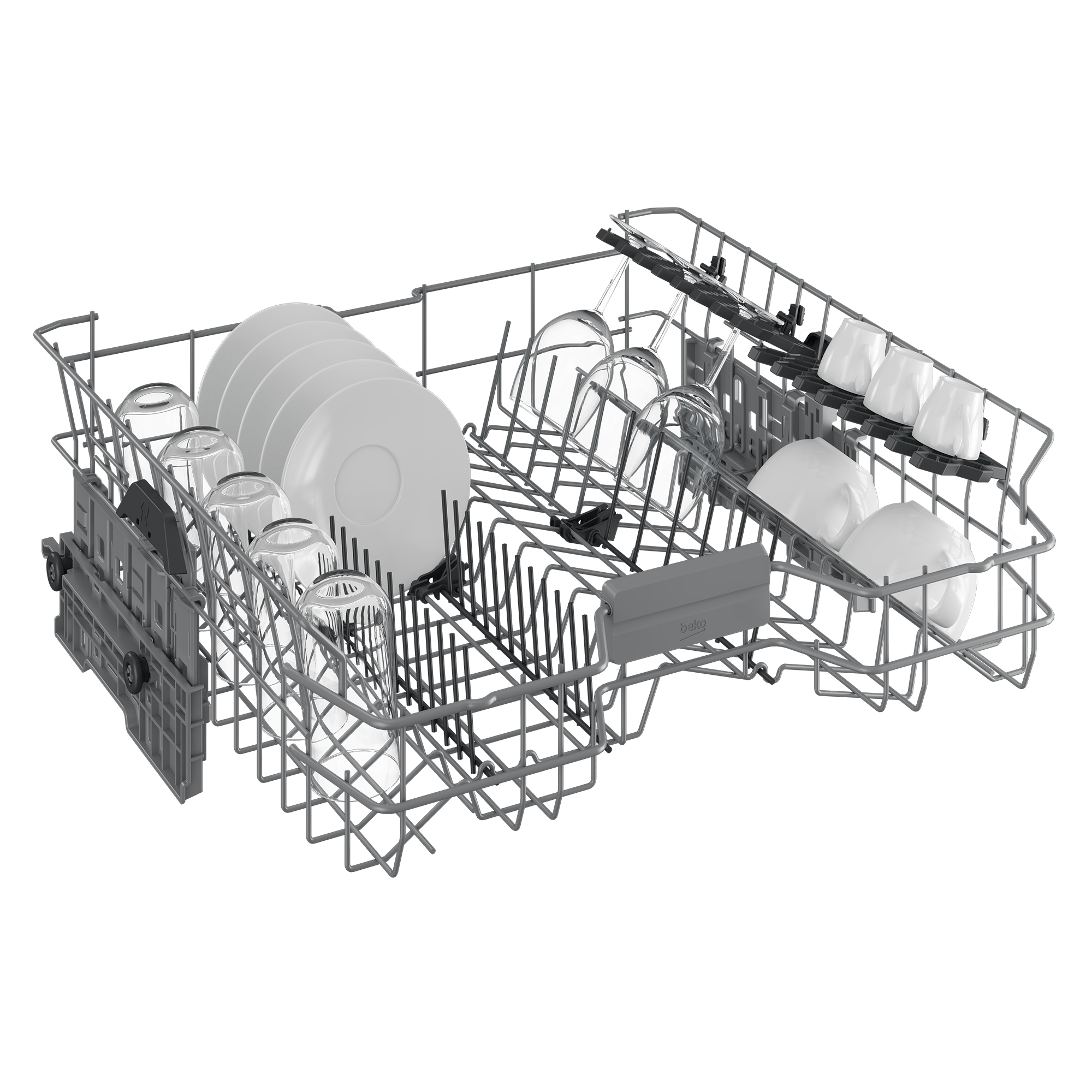 BEYOND, 15 kompletov. 6 programov, razred D, 3. košara, poraba vode 9,9 lit/cikel, raven hrupa 44 dBA, samodejno odpiranje vrat, časovnik zakasnitve 1/2-24h, intenzivna higiena, barva Pearl Inox