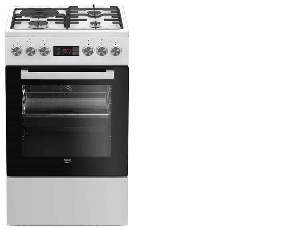 Beko štedilnik FSE53320DWCS ima 3 plinska in 1 električno kuhališče ter pečico s prostornino 60 litrov. Na izbiro ima 6 programov pečenja.