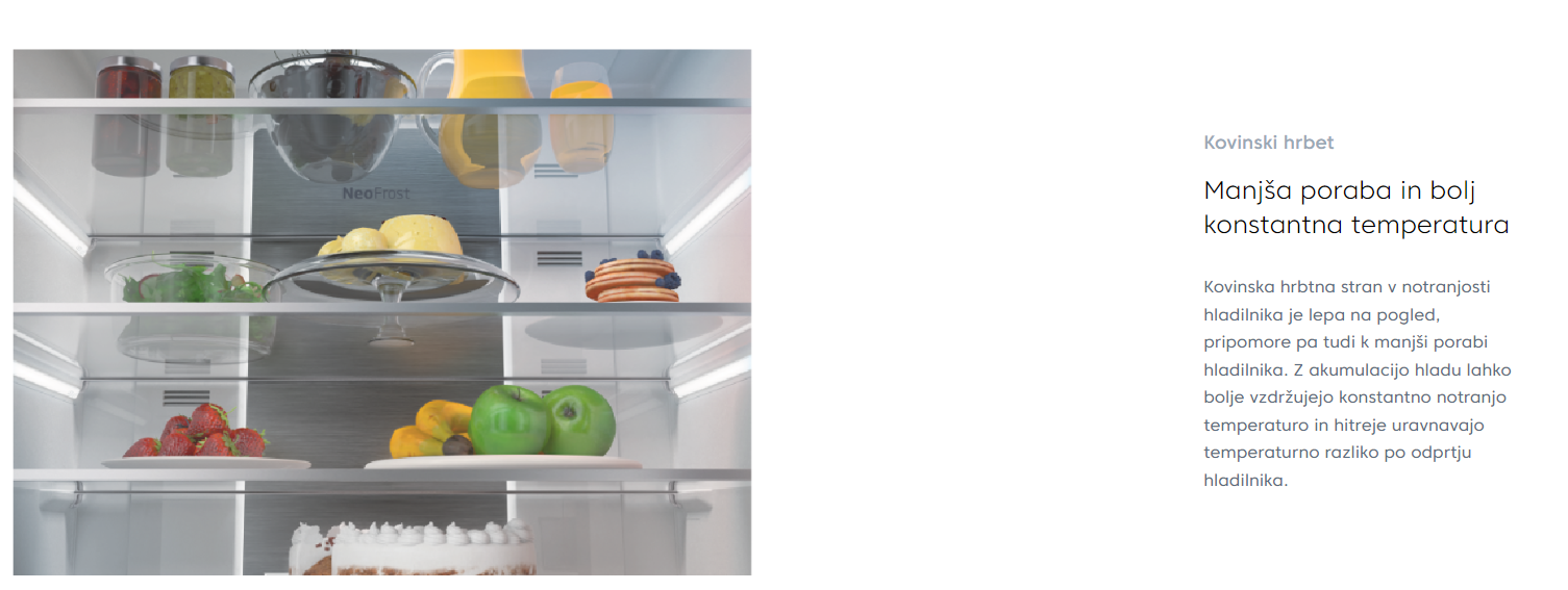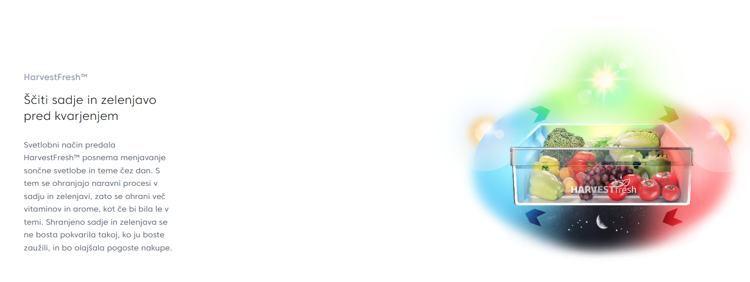 Z naprednim hladilnim sistemom Neo Frost ta hladilnik zagotavlja optimalen nadzor temperature in vlažnosti, ohranja svežino vaših živil za daljše obdobje. Tehnologija Harvest Fresh še dodatno povečuje trajnost vaših pridelkov, zagotavljajoč, da je vsak grižljaj enako hrustljav in okusen kot dan, ko ste ga kupili.