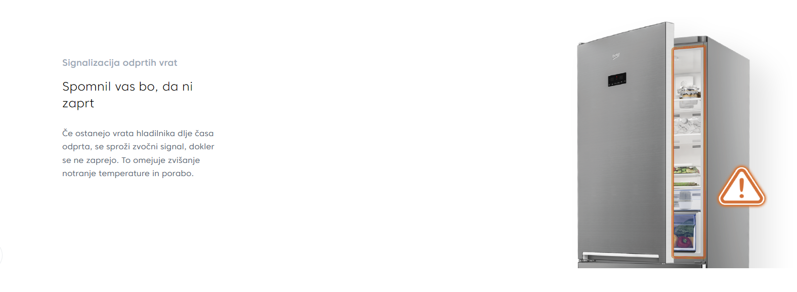 Druge opazne funkcije vključujejo opozorilo ob odprta vrata, otroško ključavnico za dodatno varnost in uporabniku prijazen zaslon na vratih. Hladilnik je opremljen z priročnim predalom za led, kar odpravlja potrebo po ločenem ledomatu. Ste opremili svojo kuhinjo s tem hladilnikom, ki brezhibno združuje inovacije, učinkovitost in slog. S svojimi impresivnimi lastnostmi in elegantnim dizajnom ni le aparat; je izjava o sodobnem življenju.