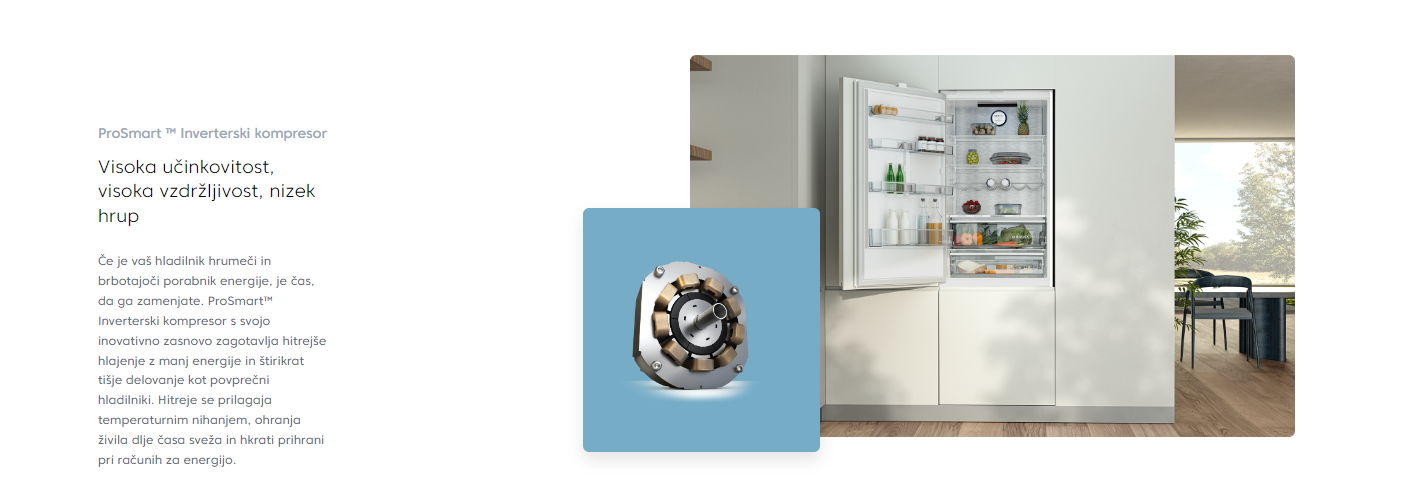 Samostoječ podpultni hladilnik, ki se uvršča v Energy Efficiency Class E, predstavlja optimalno kombinacijo zmogljivosti in estetike. S ProSmart Inverter Compressor tehnologijo zagotavlja učinkovito delovanje, medtem ko je opremljen s funkcijo proti zmrzali za dodatno zaščito zamrzovalnega dela. Njegove dimenzije 177 cm × 90 cm × 66 cm omogočajo enostavno namestitev v vsak prostor.
