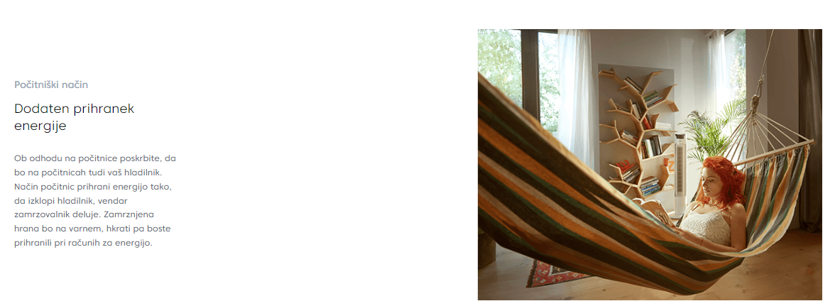 Za dodatno udobje poskrbi TFT zaslon, ki je združen z elektronskim upravljanjem. Hladilnik je opremljen s tehnologijami, kot so Eko funkcija in Način počitnice, ki prispevajo k njegovi energetski učinkovitosti.