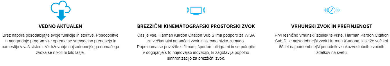 Brez dodatnih žic. Harman Kardon Citation Sub S se brezžično poveže in enostavno nastavi z enim napajalnim kablom, tako da lahko hitreje začnete uživati ??v domačem kinu.