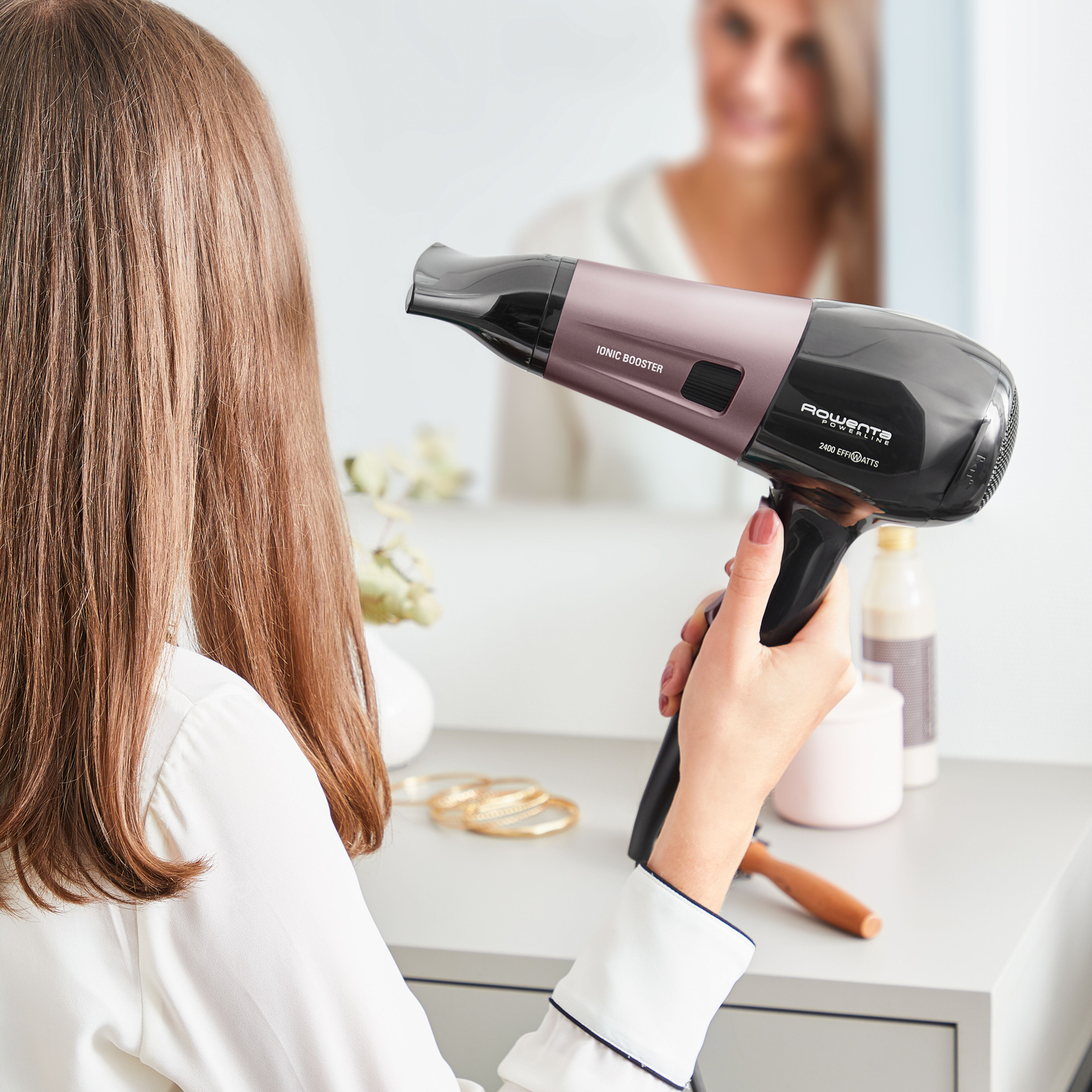 IONIC BOOSTER TEHNOLOGIJA: Sušilnik za lase, ki oddaja milijone negativnih ionov, zahvaljujoč napredni ionski tehnologiji, zmanjšuje statično elektriko za lep videz ter za gladke in obvladljive lase, izboljšane s sijajem • MOČNA UČINKOVITOST: Dolgotrajen DC motor, ki ga poganja tehnologija Effiwatts * za izboljšanje zmogljivosti s samo 2100 W dejanske porabe energije • DOLGOTRAJNI STIL: Udar hladnega zraka za vrhunski zaključek stila • PREPROST ZA UPORABO: 6 nastavitev hitrosti / temperature (3 temperature in 2 hitrosti) za enostavno nastavitev pretoka zraka in toplote za sušenje po meri • izboljšana zaščita: napredna nega zagotavlja pregrevanje lepih, zdravih las • NATANČNO OBLIKOVANJE: 12 mm usmerjevlanik nudi natančno oblikovanje kot zaključni dotik • CURLS & VOLUME: difuzor za popoln slog in lepe kodre • ENOSTAVNO ČIŠČENJE: snemljiva mrežica za enostavno čiščenje • UDOBNO: 1,8 m dolg kabel zagotavlja večjo pretočnost, svobodo gibanja in enostavno uporabo