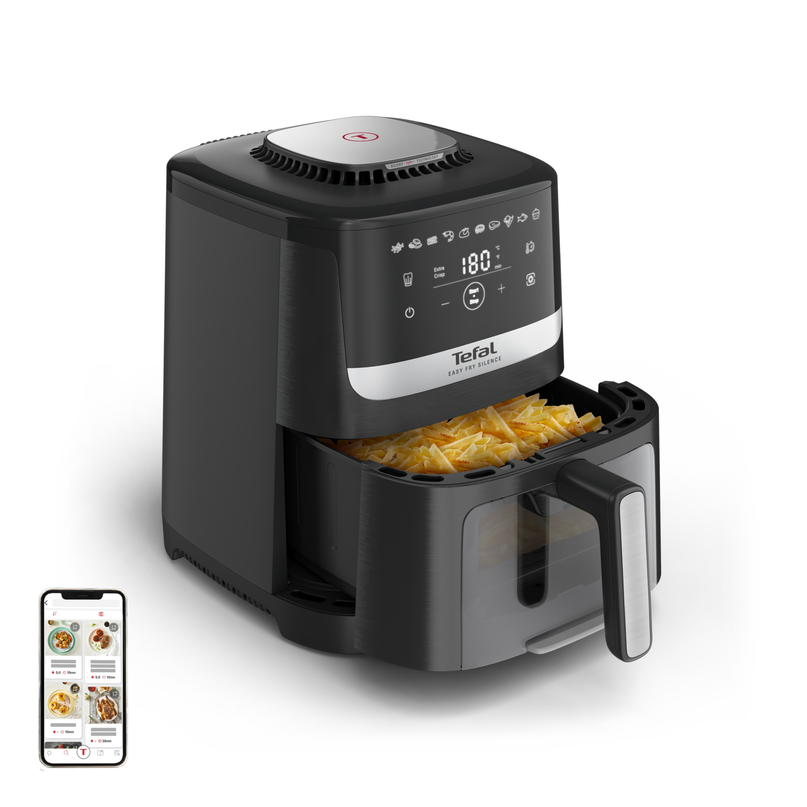 NAJTIŠJI CVRTNIK*: Popolna spokojnost v kuhinji zahvaljujoč naši novi ekskluzivni tehnologiji Tefal Silent, ki izolira hrup prek zmogljivejšega motorja in optimiziranega sistema pretoka zraka (v načinu cvrtja na vroč zrak za kuhanje krompirčka, testi izvedeni v skladu s standardom IEC60704 )