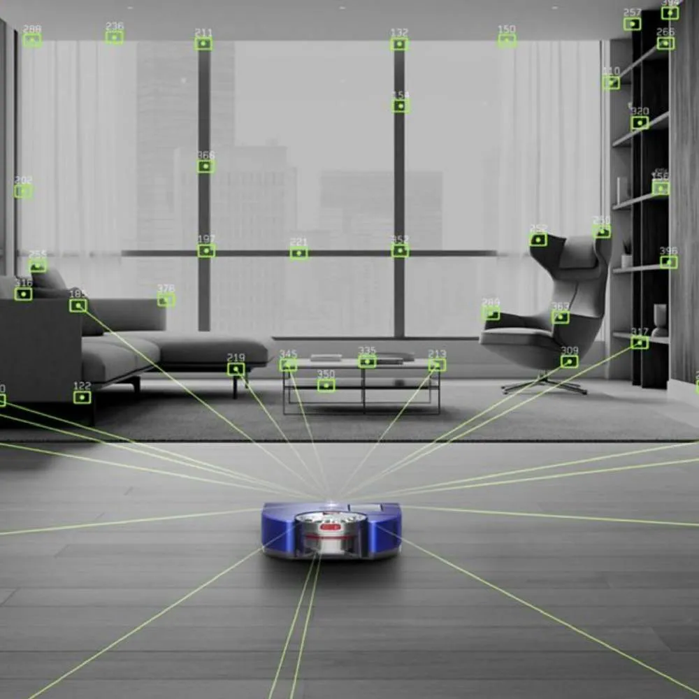 Vizualna navigacija s 360°: Prepoznava, kje mora čistiti in si zapomni, kje je že bil.