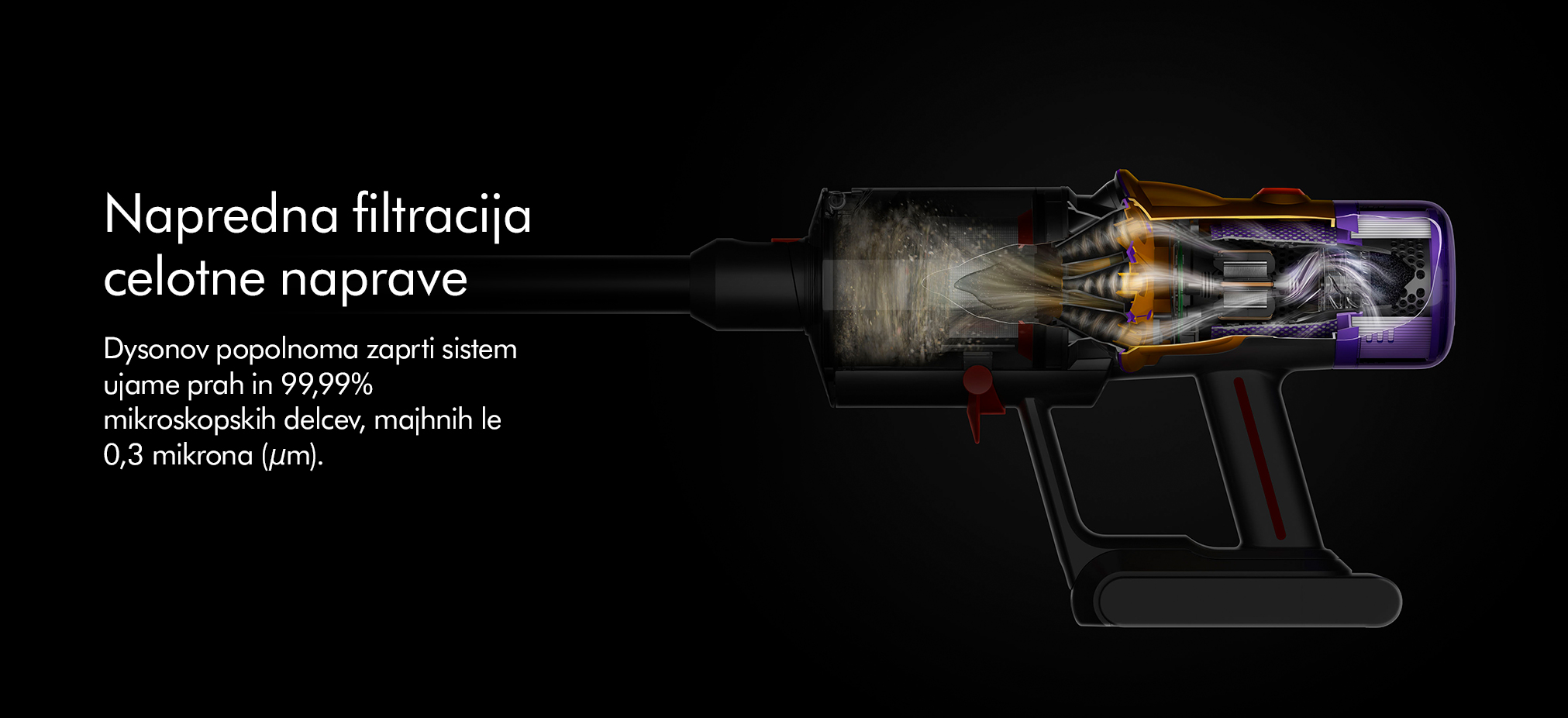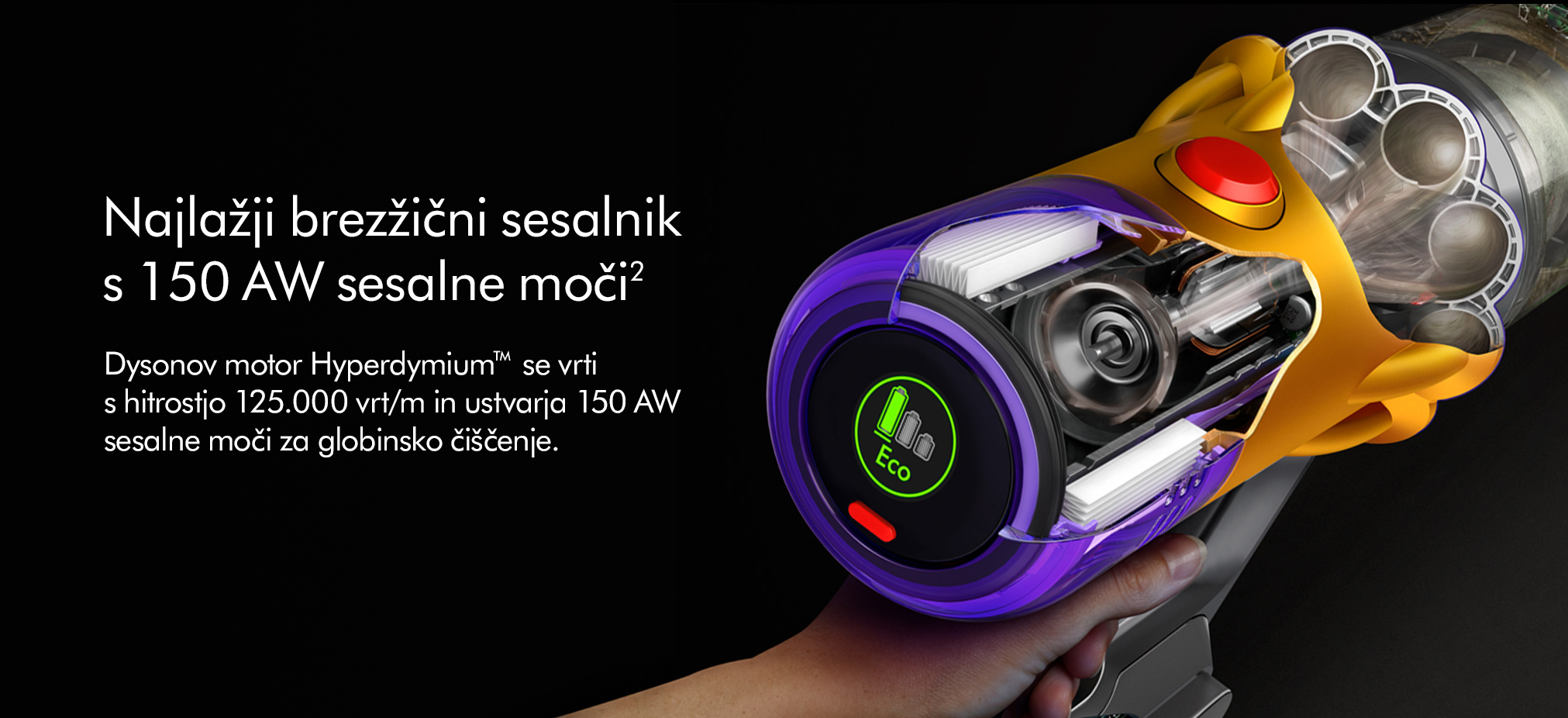 - Dysonov lahki akumulatorski sesalnik z močno sesalno močjo 150 AW1