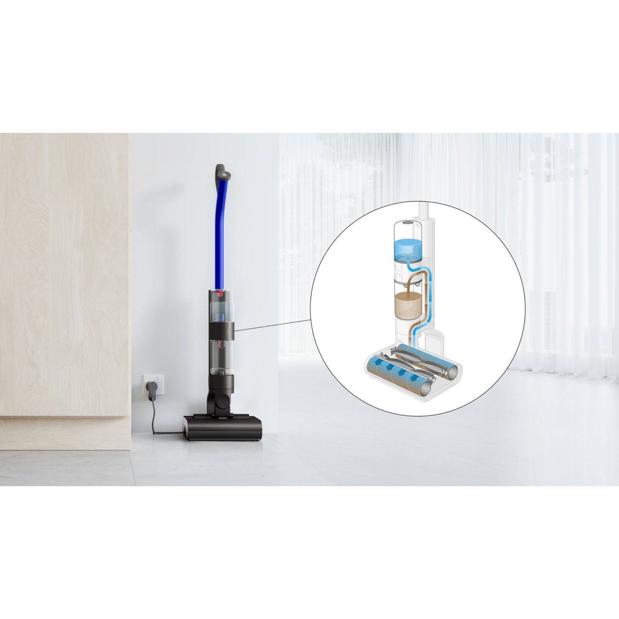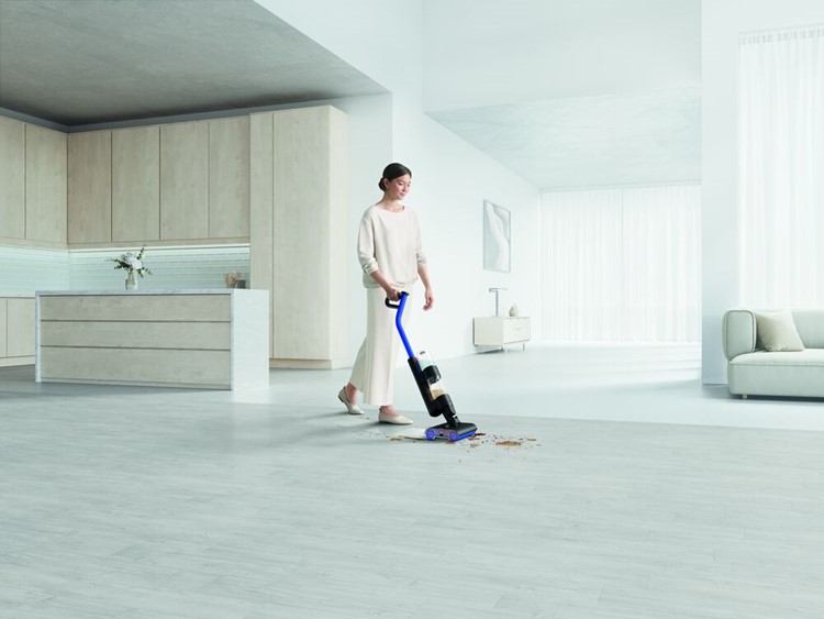 Enostaven za manevriranje, tudi pod nizkim pohištvom. Odstranjuje mokro in suho umazanijo v enem potezu - zlahka pobere vse z enim prehodom s čopičem. Dva motorna valjka, ki se vrtita v nasprotnih smereh, prekrita z visoko vpojnimi mikro vlakni, hkrati odstranjujeta razlite tekočine, ostanke, lase in zasušene madeže.