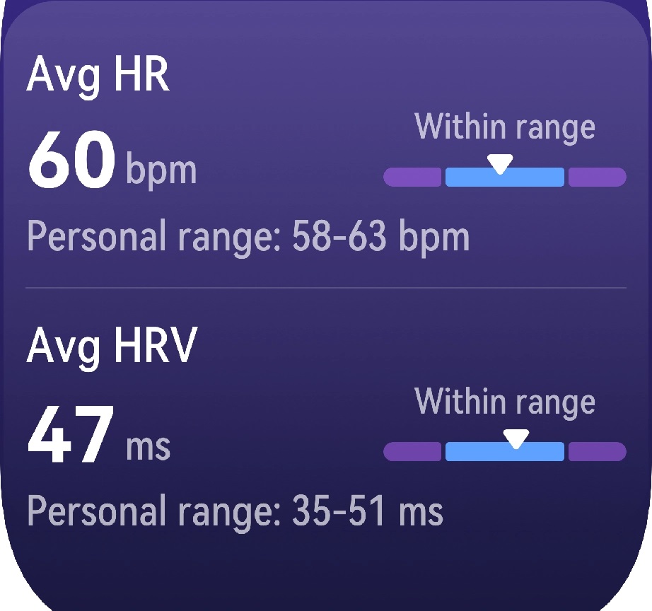 Oglejte si, kako dobro spite in kako dobro ste se spočili z metrikami na visoki ravni, kot so srčni utrip, frekvenca dihanja, ravni SpO2, zavedanje dihanja med spanjem, povprečna stopnja HRV (spremenljivosti srčnega ritma) in prilagojeni osnovni razponi vrednosti.
