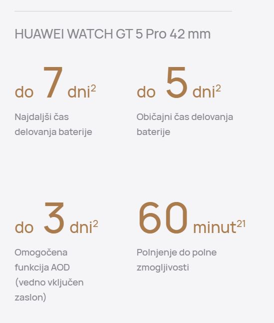 Avtonomija baterije: 7-dnevno delovanje baterije pri največji uporabi, 5-dnevno delovanje baterije pri redni uporabi, 3-dnevno delovanje baterije z omogočeno funkcijo Always On Display (vedno vključen zaslon)