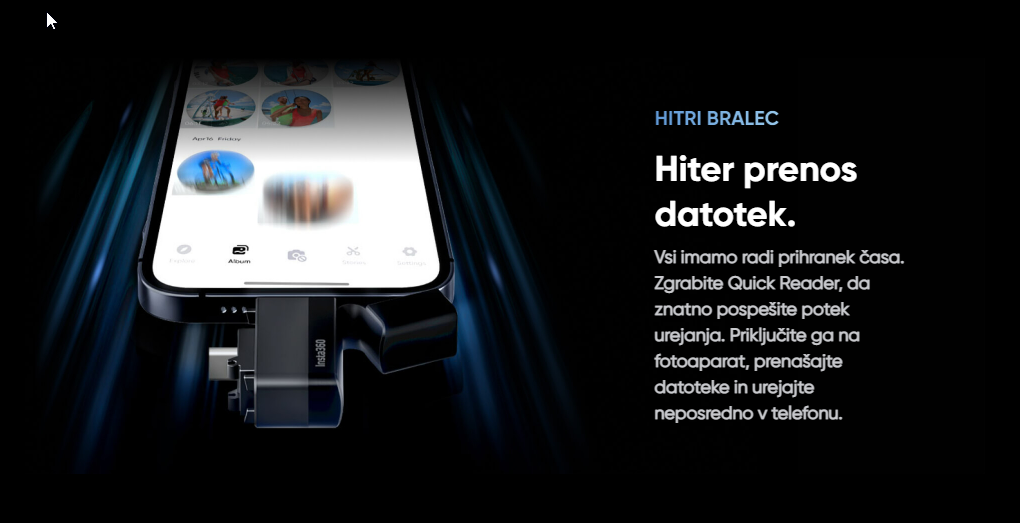 Kartica MicroSD: Priporočamo hitrostni razred UHS-I V30, SD kartice formata exFAT z največjim pomnilnikom 1 TB.