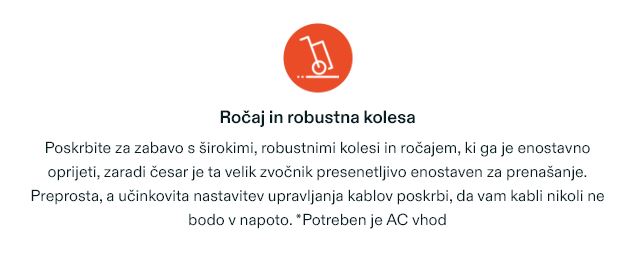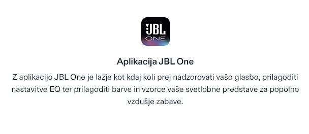 Luči, barve, zabava! Preoblikujte svoj prostor v očarljivo, polno čutno izkušnjo z največjim večdimenzionalnim svetlobnim šovom med vsemi zvočniki za zabavo. Ima edinstven učinek zvezdnate noči, hladne svetlobne sledi, utripajoče luči in celo luči, ki se projicirajo na katero koli površino, na kateri stoji. Vse se sinhronizira z vašo glasbo in je mogoče enostavno upravljati prek poenostavljenih, uporabniku prijaznih gumbov na zgornji plošči ali prek aplikacije JBL One.