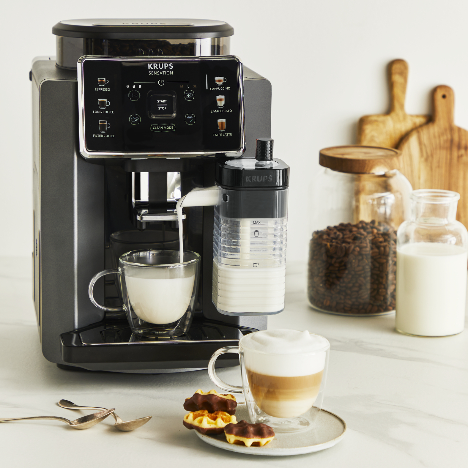 KAJ JE V ŠKATLI: Samodejni kavni aparat Sensation Milk, posoda za mleko Milk Maestro