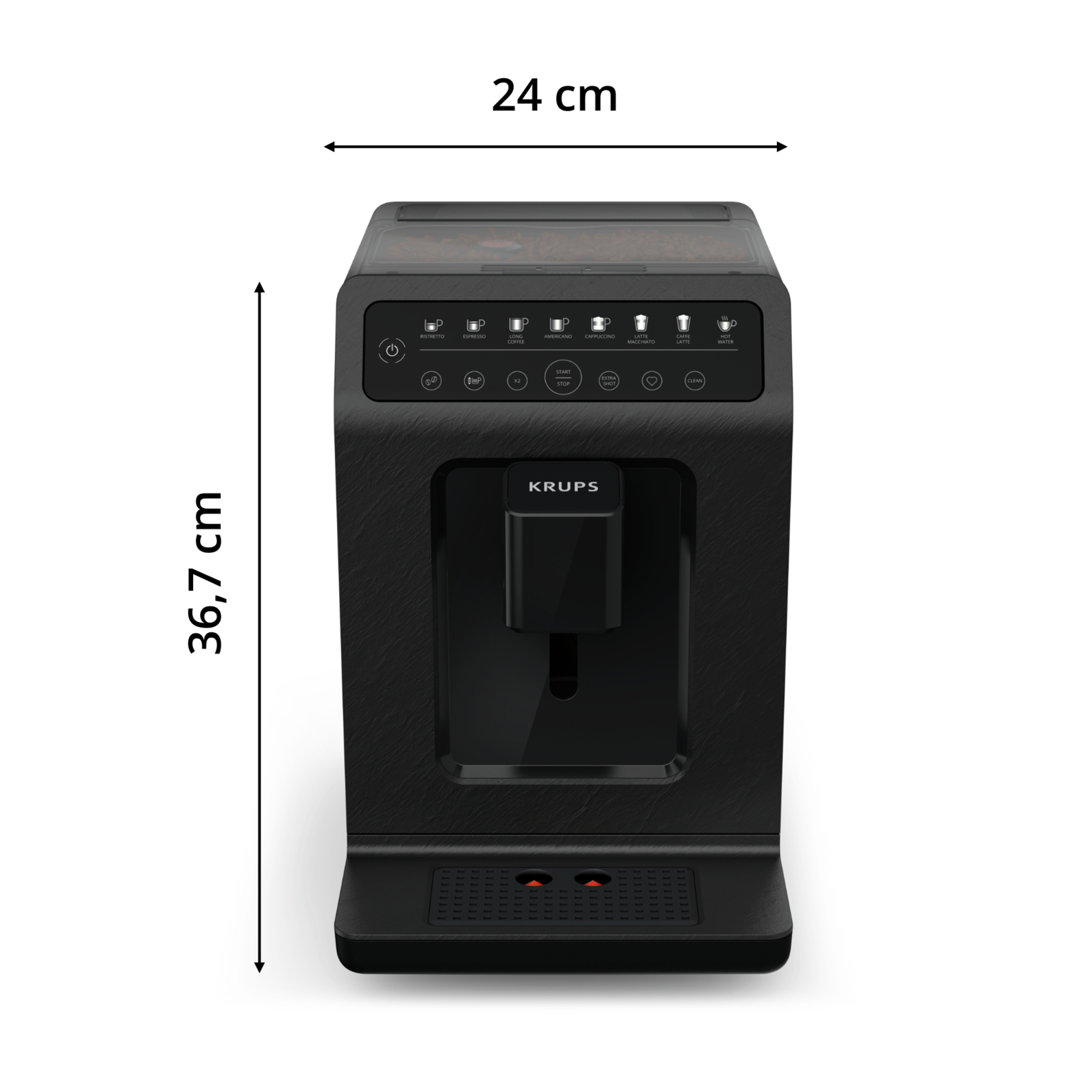 KRUPS Evidence Eco-Design avtomatski aparat za esspresso in cappuccino, Popoln okus, Quattro Force, En dotik za bele napitke, 8 predhodnih nastavitev, Prilagojena priprava napitkov, EA897B10