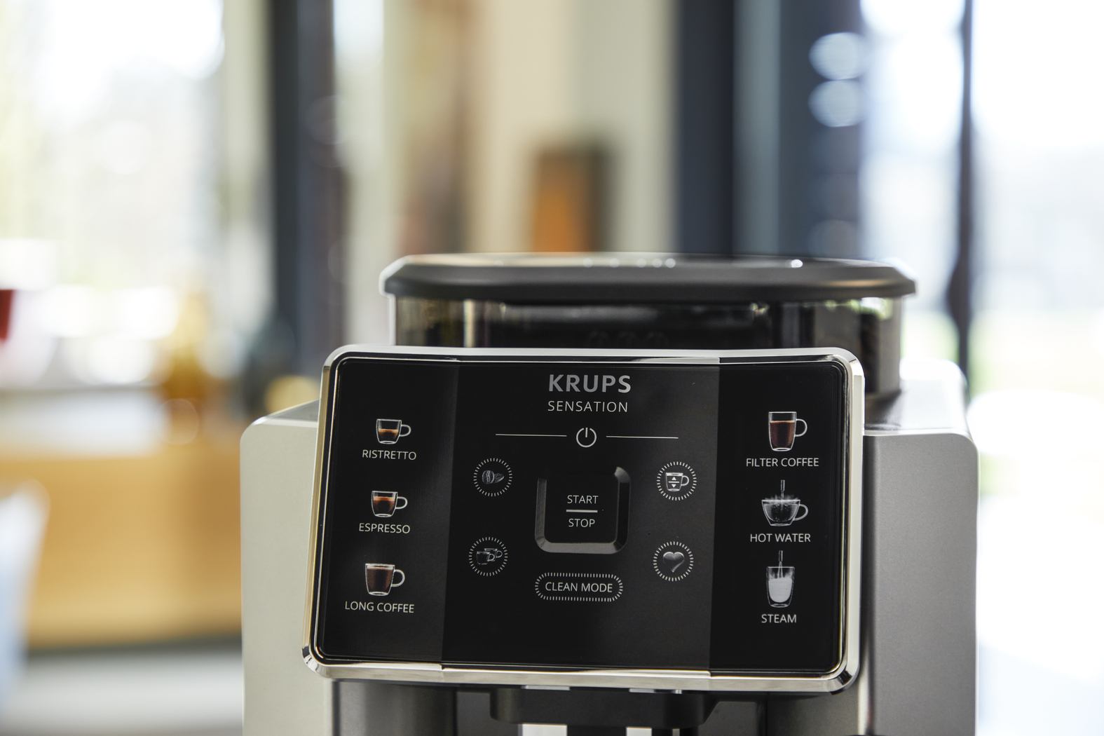 KRUPS Sensation C90: popolnoma avtomatski kavni aparat, preprosta uporaba, enostavno vzdrževanje, svetlobna opozorila, priročno čiščenje, nastavitve po meri, EA910E10