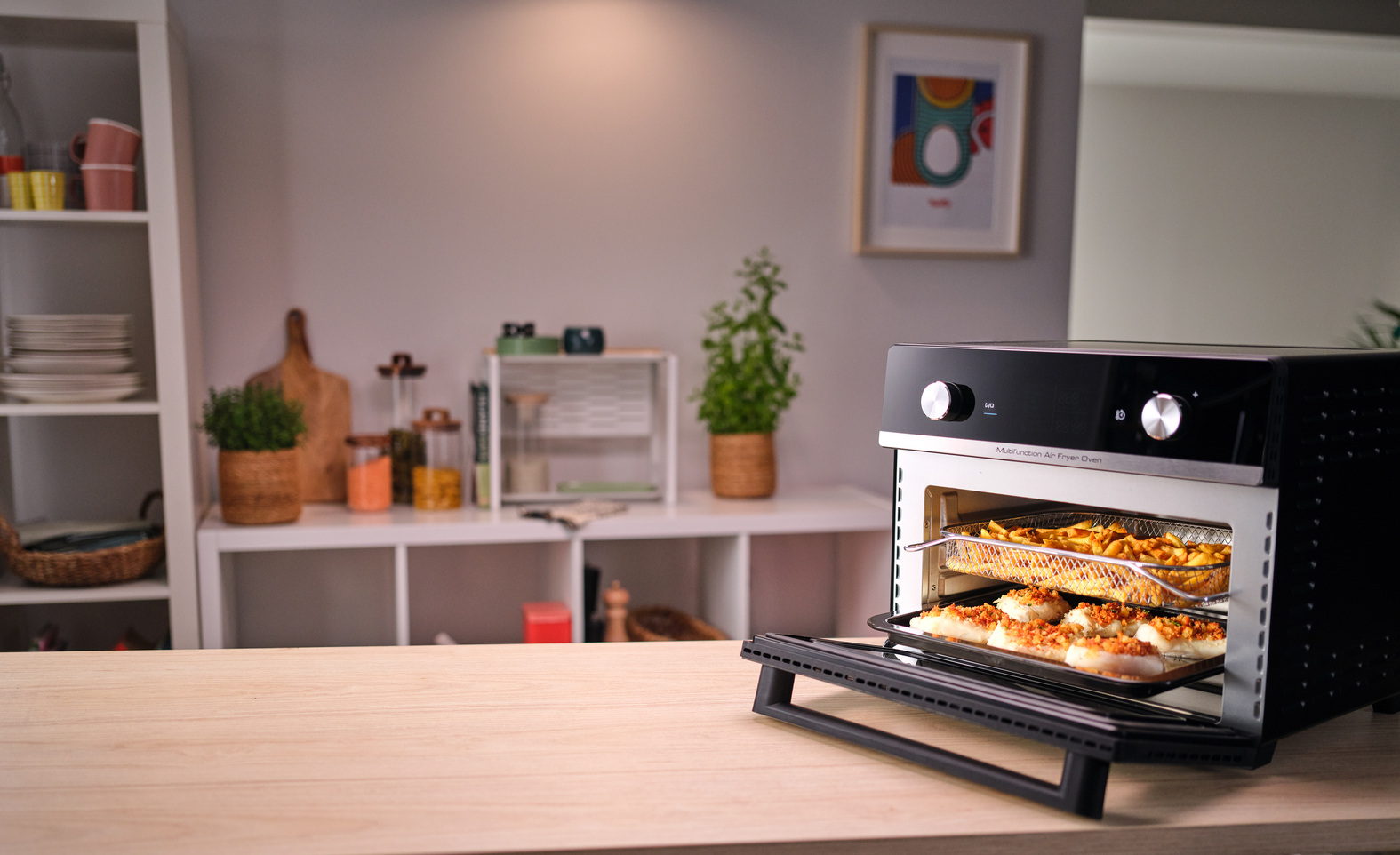 VSESTRANSKI DODATKI: košara za cvrtje na vroči zrak obljublja hrustljav krompirček ob vsaki pripravi – z mrežo, rešetko in pekačem za različne obroke, ki bodo navdušili goste, ter pladnjem za drobtine za enostavno čiščenje po kuhanju