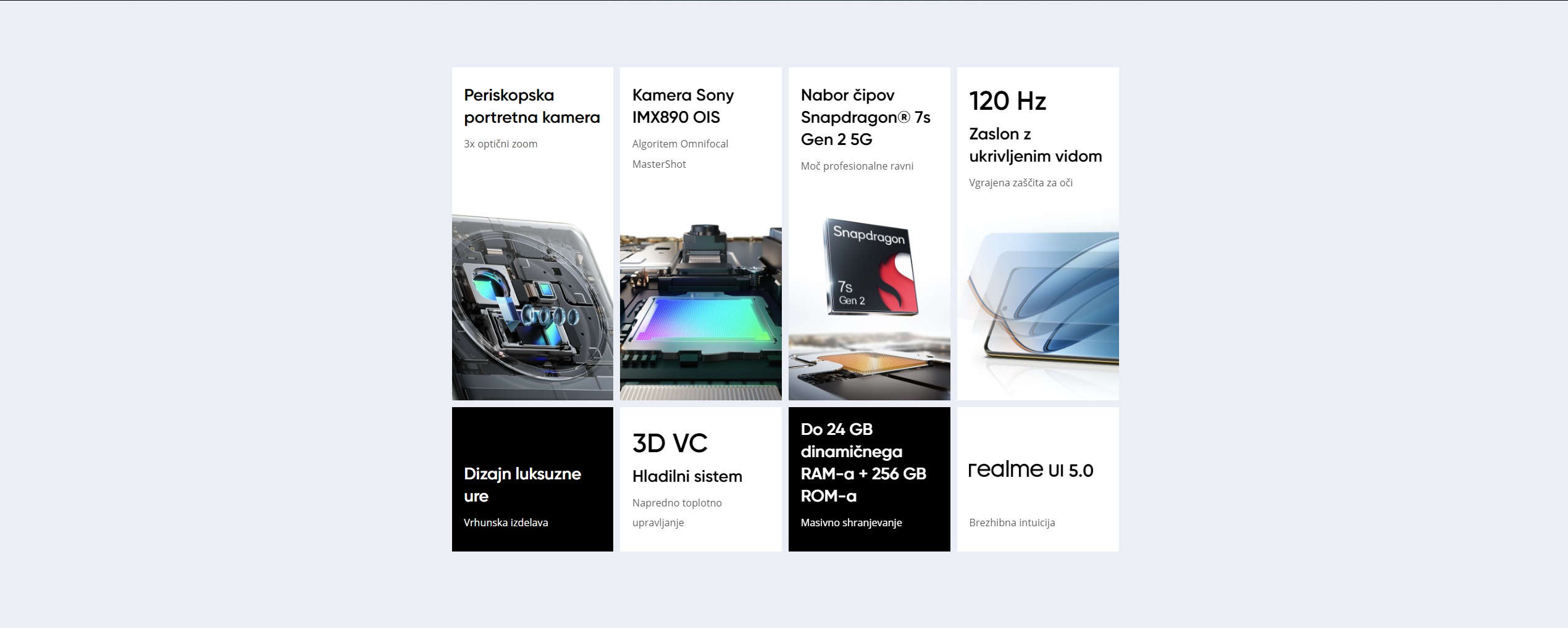 Realme 12 Pro+ navdušuje z vrhunsko zmogljivostjo, vključno s 12 GB RAM-a in ogromnim spominom 512 GB za nemoteno delovanje in obilico shrambnega prostora. S 50 MP glavno kamero in osupljivim zaslonom OLED doživite izjemno fotografiranje in gledanje vsebin. Eleganten dizajn ter zmogljiva baterija pa naredita Realme 12 Pro+ nepogrešljiv spremljevalec za vsak dan. Odkrijte novo raven zmogljivosti s tem vrhunskim pametnim telefonom.