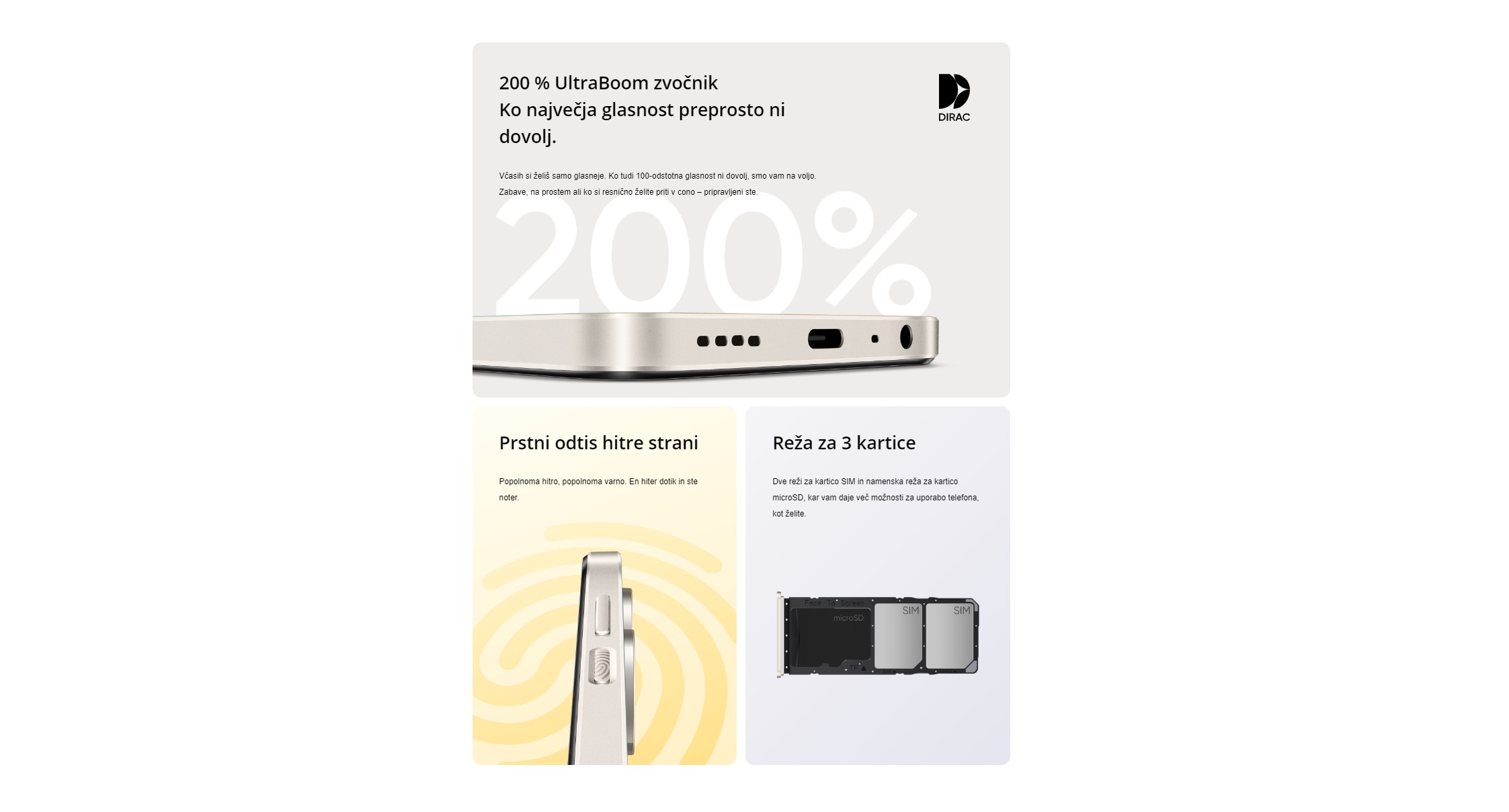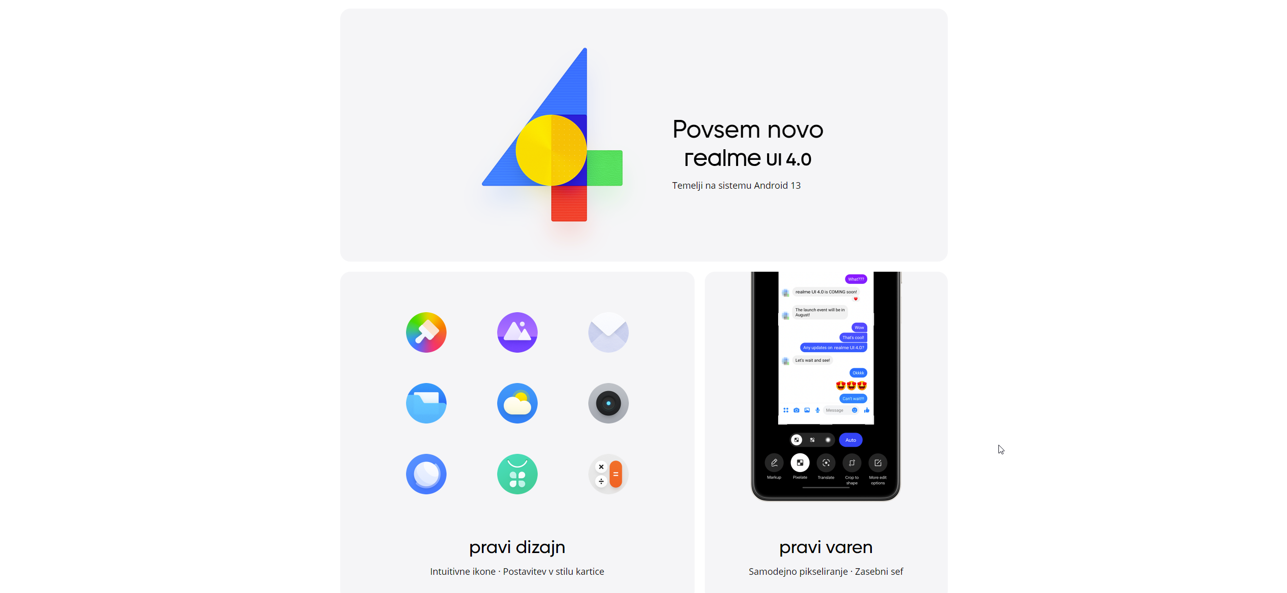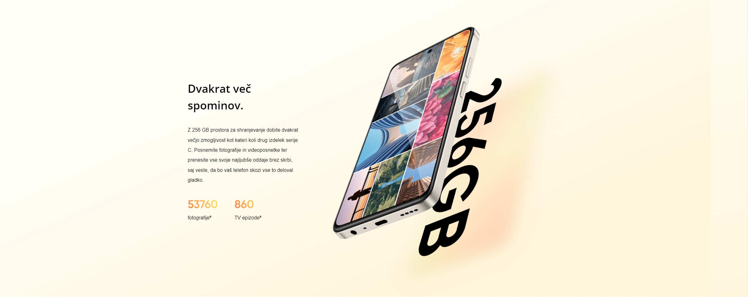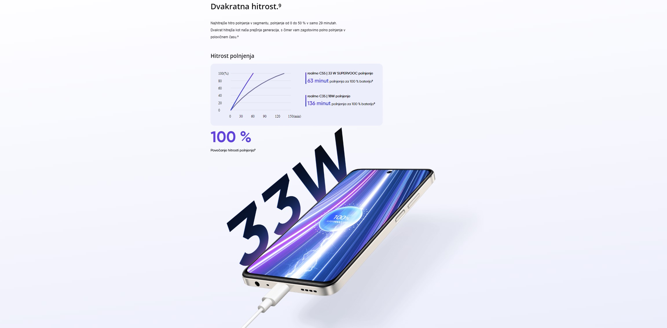 Realme C55 je zmogljiv pametni telefon, opremljen z 64 MP AI kamero, do 8 GB RAM-a in 256 GB notranjega pomnilnika, ter podporo za dodatnih 1 TB zunanje shrambe. S poudarkom na oblikovanju in zmogljivosti, telefon vključuje tudi 33 W SUPERVOOC polnjenje, masivno baterijo s kapaciteto 5000 mAh, ter 6,72-palčni zaslon FHD+ z 90 Hz osveževanjem. S sistemom Android 13 in realme 4.0 uporabniškim vmesnikom ponuja odlično izkušnjo uporabe.