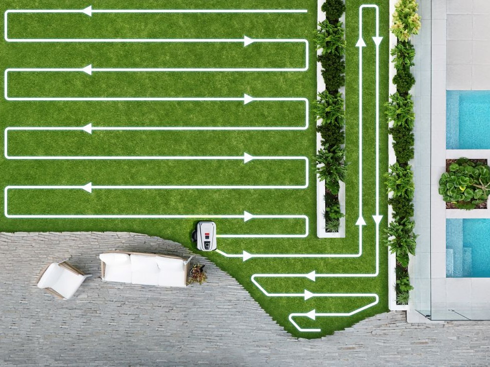 Novi učinkoviti sistem načrtovanja poti, podprt z naprednimi algoritmi, samodejno določi najučinkovitejše poti košnje – tudi ob ukrivljenih ali nagnjenih robovih, ozkih pasovih ali območjih s statičnimi ovirami. To bistveno poveča splošno učinkovitost in pokritost košnje. Sistem se prilagaja obliki in smeri vaše trate, kar maksimira pokritost, hkrati pa zmanjšuje nepotrebno obračanje in podvajanje prehodov.