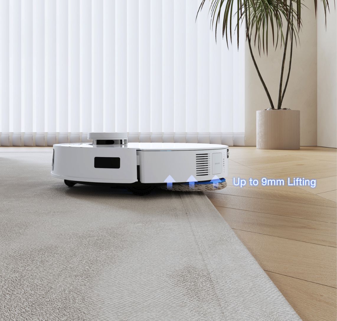 Robotski sesalnik Ecovacs Deebot T30C PRO GEN2 uporablja senzorje za izjemno natančno prepoznavanje preprog in samodejno dvigne dve vrtljivi krpi za 9 mm, ko zazna preprogo ali gre čez očiščeno območje. To bo zaščitilo preproge pred mokroto, umazanijo in zagotovilo njihovo higiensko čistočo. Poleg tega tehnologija Suction Boost poveča sesalno moč na preprogah in jih globoko posesa.