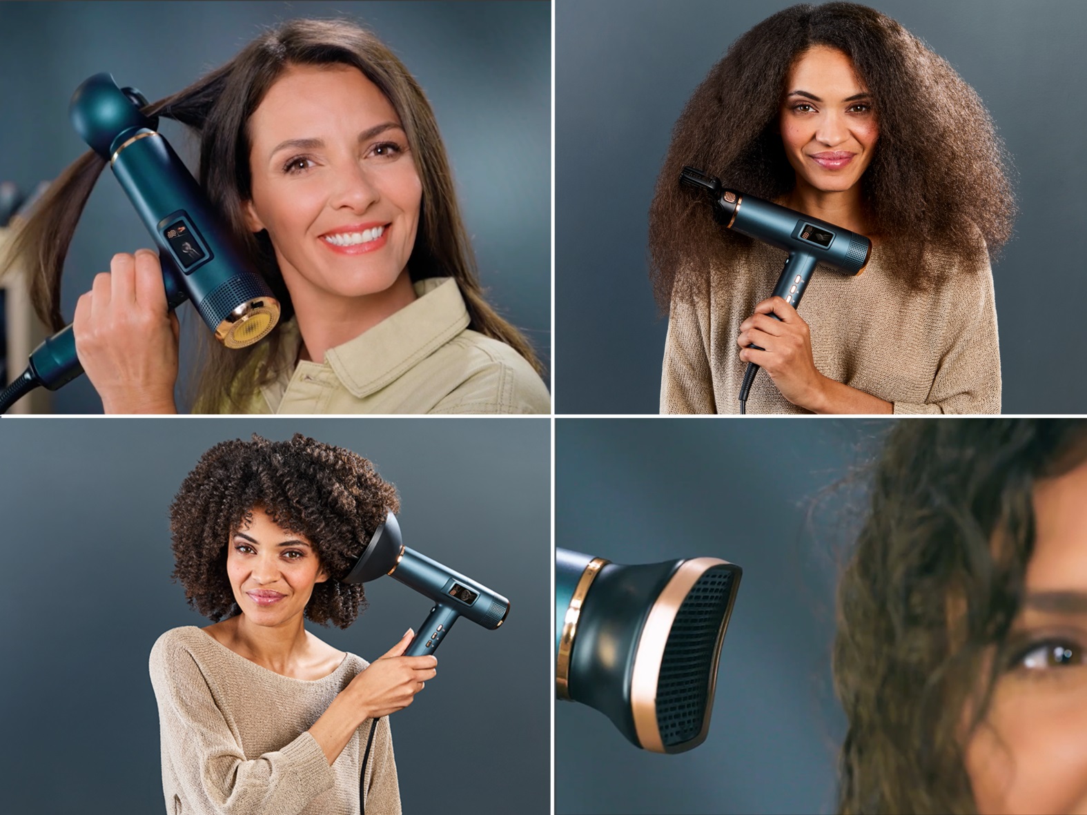 - Sušenje in oblikovanje po meri, s samodejnim prilagajanjem glede na tip las - Širok nabor nastavkov: nastavek Air Smooth Pro, glavnik s širokimi zobmi, nastavek za dviganje korenin, difuzor - Sušenje s hitrostjo zraka do 225 km/h - Visokokakovostni zaslon in vgrajeni gumbi za enostavno navigacijo