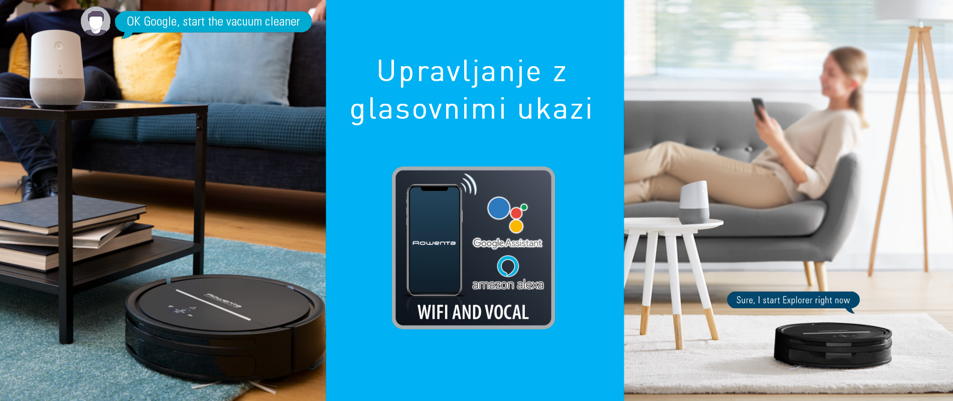 Aplikacija Rowenta Robots olajša uporabo robotskega sesalnika, ki je sedaj še bolj intuitivna zahvaljujoč popolni združljivosti s sistemoma iOS in android ter širokim razponom storitev (čišščenje, razporedi, vzdrževanje in več). Poleg tega je zelo enostaven za uporabo: preprosto se povežite z aplikacijo Rowenta Robots in ukažite robotu od kjer koli in kadar koli. Upravljajte z robotskim sesalnikom s pomočjo glasovnih asistentov, kot sta Amazonova Alexa ali Google Assistant.