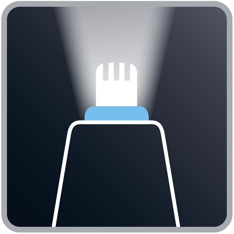 S strižnikom za ušesa in nos se poslovite od motečih dlačic v nosu in ušesih. Prirezovanje je varno in neboleče, saj ima 360-stopinjski sistem vrtljivih rezil, ki vsakič zagotavlja popolne rezultate. Tudi najtanjše in najmanjše dlačice ne bodo ostale spregledane, saj vam domiselna tehnologija Vision osvetljuje območje obrezovanja in pomaga, da ničesar ne spregledate. Stoodstotno vodoodporen za enostavno čiščenje, strižnik za ušesa in nos je pripravljen kadarkoli in kjerkoli ste.