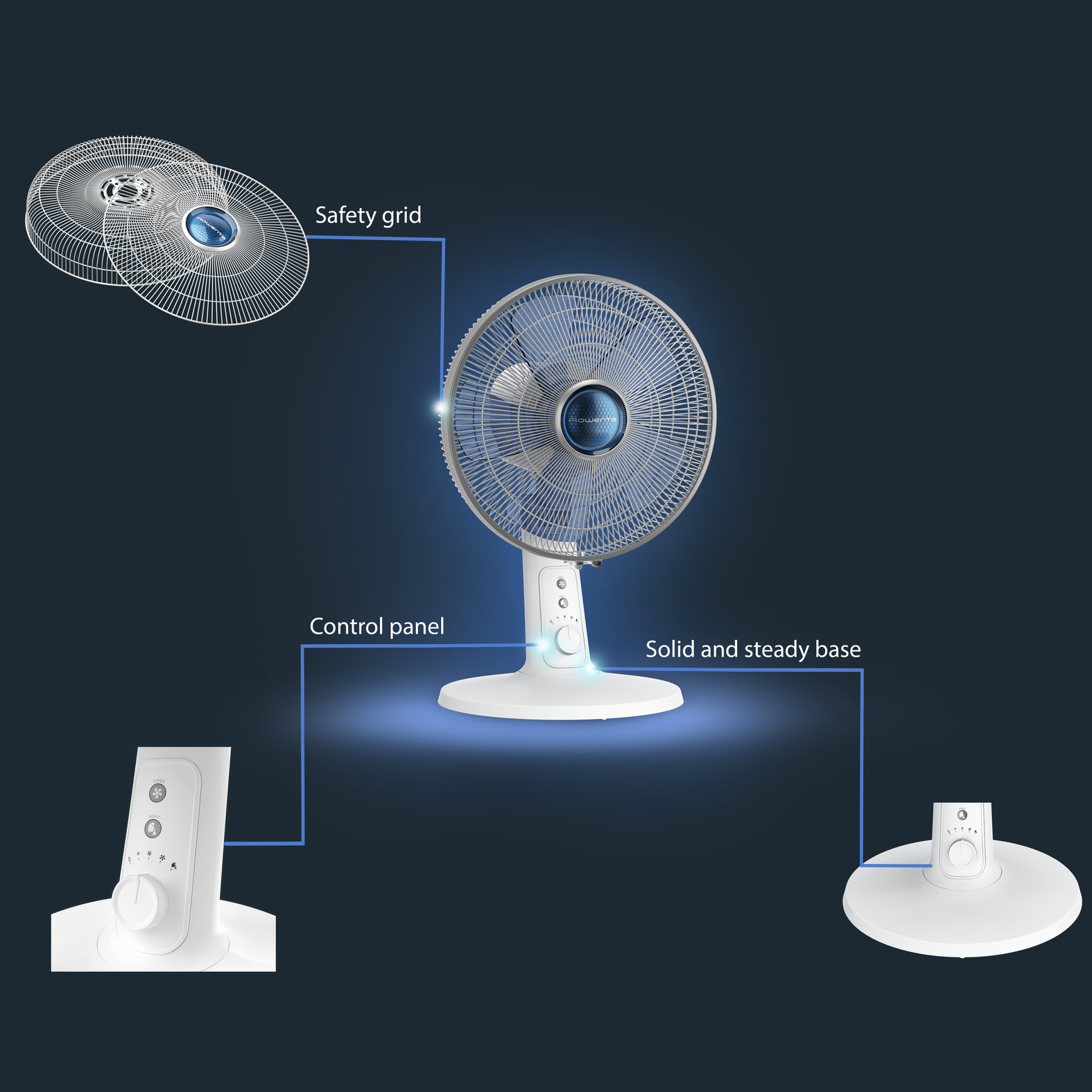 VENTILATOR TURBO SILENCE EXTREME+ - MOČEN: najmočnejši Rowentin ventilator*, ki ponuja izjemno osvežitev 45 m3/min pri maksimalni hitrosti • - - POPOLNOMA TIH: najtišji ventilator, kadarkoli zasnovan pri Rowenti*, samo 38 dBA pri minimalni hitrosti - 4 HITROSTI: stoječi ventilator s personalizirano osvežitvijo, ki zadovolji vse vaše potrebe, tudi s tihim nočnim načinom in načinom Turbo Boost - DIFUZIJA: avtomatska oscilacija (kot 120°) in usmeritev za široko razpršenost zraka po vsej sobi * • VARNOST: izboljšana varnost zahvaljujoč novi, izjemno varni mreži