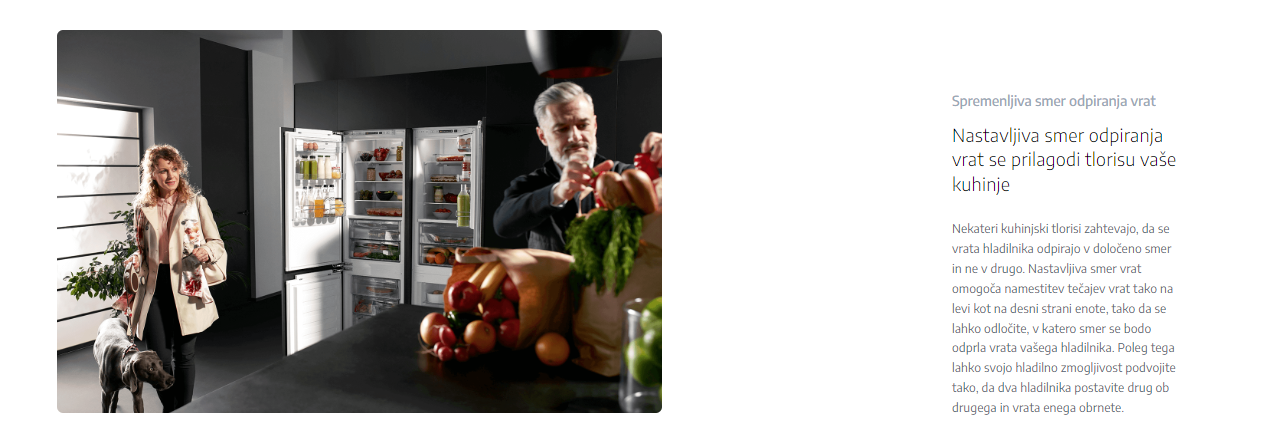 Nastavljiva smer odpiranja vrat vam omogoča prilagodljivost glede na postavitev vaše kuhinje, kar je praktično in funkcionalno. S tem se izognete morebitnim oviram in izkoristite prostor optimalno.