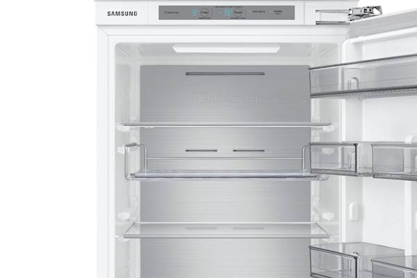 Vgradni hladilnik Samsung se ponaša z zamrzovalnikom spodaj, tehnologijo No Frost za preprečevanje nabiranja ledu in tehnologijo TwinCooling Plus za neodvisno hlajenje hladilnega in zamrzovalnega dela.