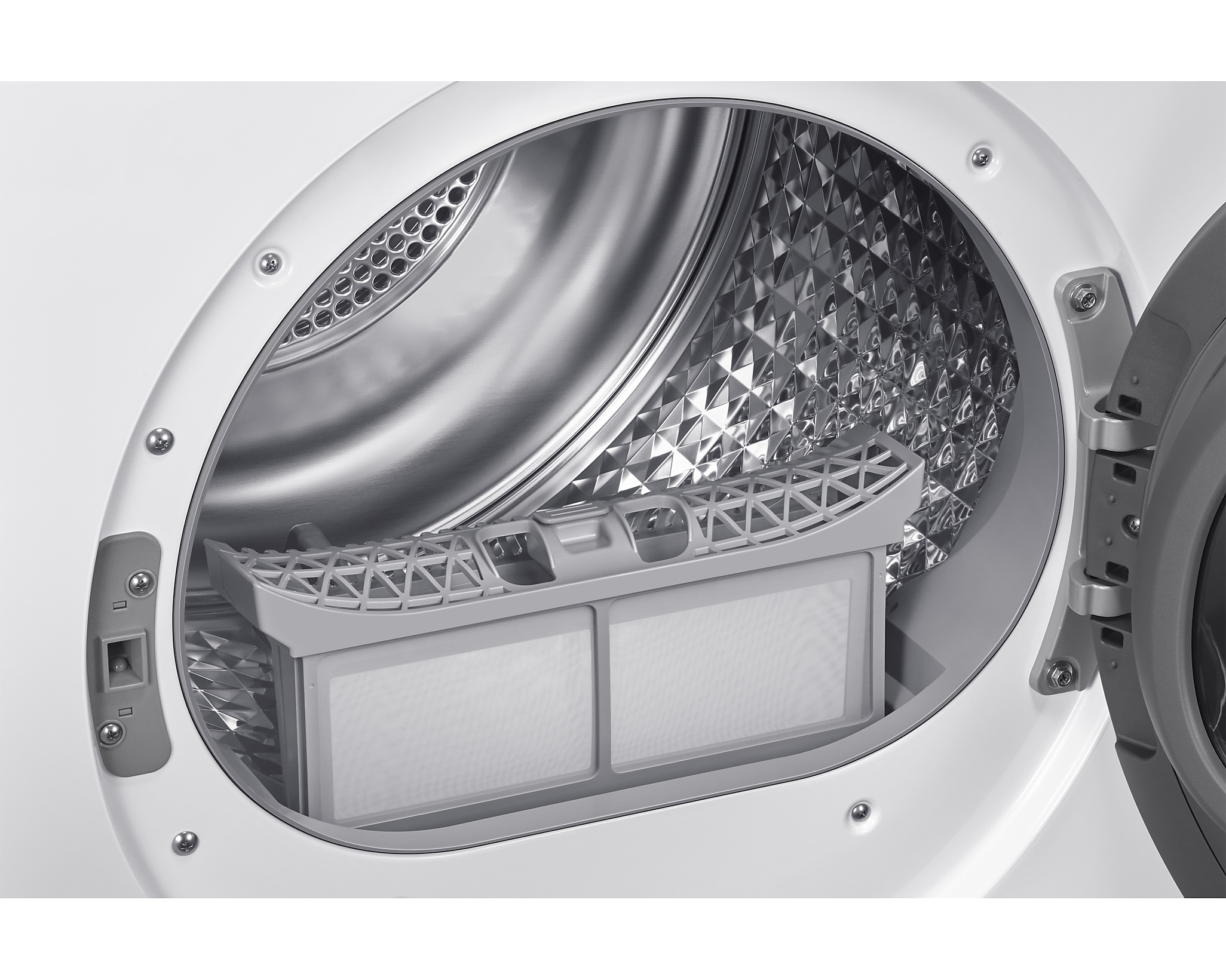 Uživajte v veliki zmogljivosti 9 kg v 600 mm globoki omari, ki se bo zlahka prilegala vašemu domu. SpaceMax Technology™ omogoča dodatno notranjo kapaciteto za uporabo velikega bobna, brez povečanja zunanjih dimenzij. Brezhibno se bo ujemal s kuhinjskimi omaricami, hkrati pa boste lahko posušili veliko oblačil naenkrat.