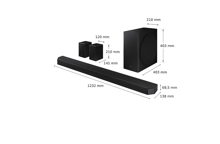 S 11 kanali, 1 kanalom nizkotonskega zvočnika in 4 kanaloma zvočnika, ki zvok usmerja navzgor, dobite zvok, ki vas res prevzame. Idealen spremljevalec vašega televizorja QLED. Postanite eno z zgodbo, saj vas obdaja popolno zvočno okolje z resničnim 11.1.4-kanalnim zvokom.