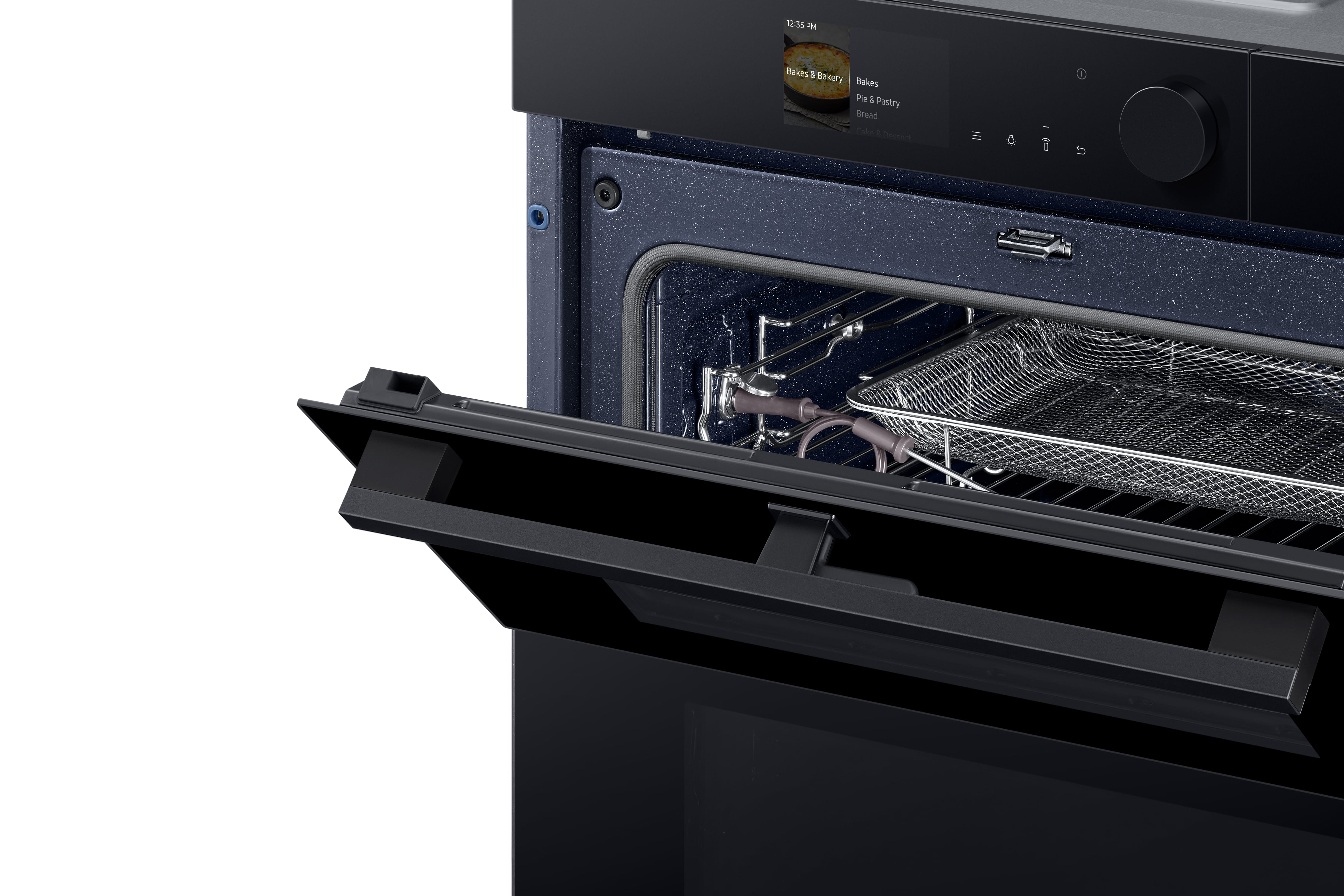 Uživajte v popolni prilagodljivosti za kuhanje različnih jedi s prilagodljivimi vrati na tečajih. Samo odprite zgornjo polovico zgornjega predela pečice za manjše obroke. Preverjanje in začinjanje hrane je tako enostavnejše, z manj izgube toplote. Ali pa odprite cela vrata, da uporabite oba predela, kadar kuhate več različnih jedi.