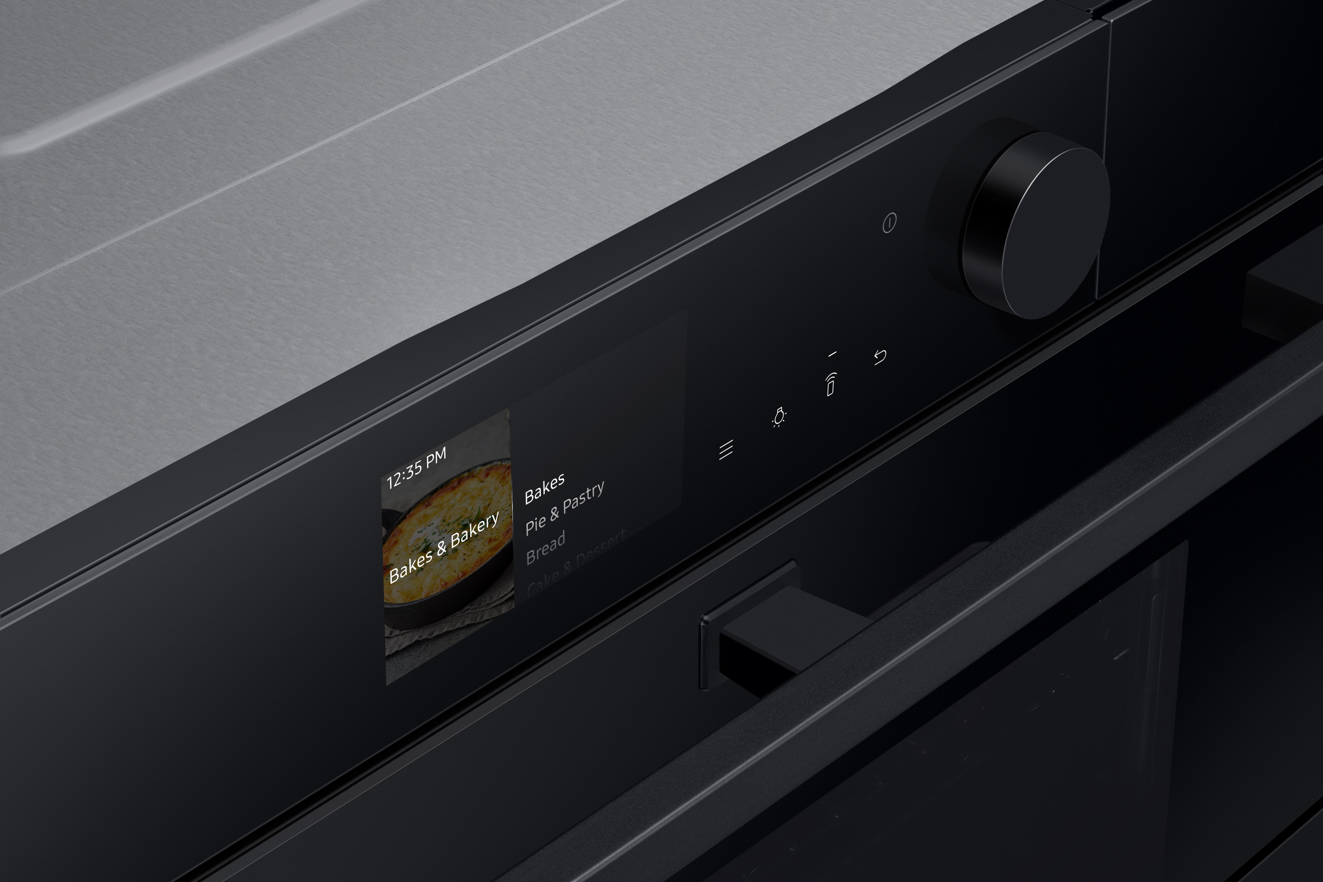 Uživajte v kuhanju brez sitnosti z intuitivnim in personaliziranim nadzorom. Modernizirana oblika ima stilsko nadzorno ploščo s 4,3-palčnim LCD-zaslonom, upravljanjem na dotik in enim gumbom. Skladno z vašimi vzorci uporabe pečica prikazuje najpogosteje uporabljene možnosti, ki jih lahko hitro izberete.