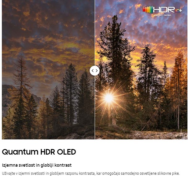 Izkusite razliko s Samsung OLED. Inovativni Samsung OLED omogoča najtemnejše odtenke črne, čisto belino in vse odtenke barv s pomočjo najnaprednejših samodejno osvetljenih slikovnih pik, ki jih poganjajo kvantne pike. Sijajna 4K kakovost slike, ki jo dopolnjuje 20 različnih nevralnih omrežij, zagotavlja, da začutite moč 4K.
