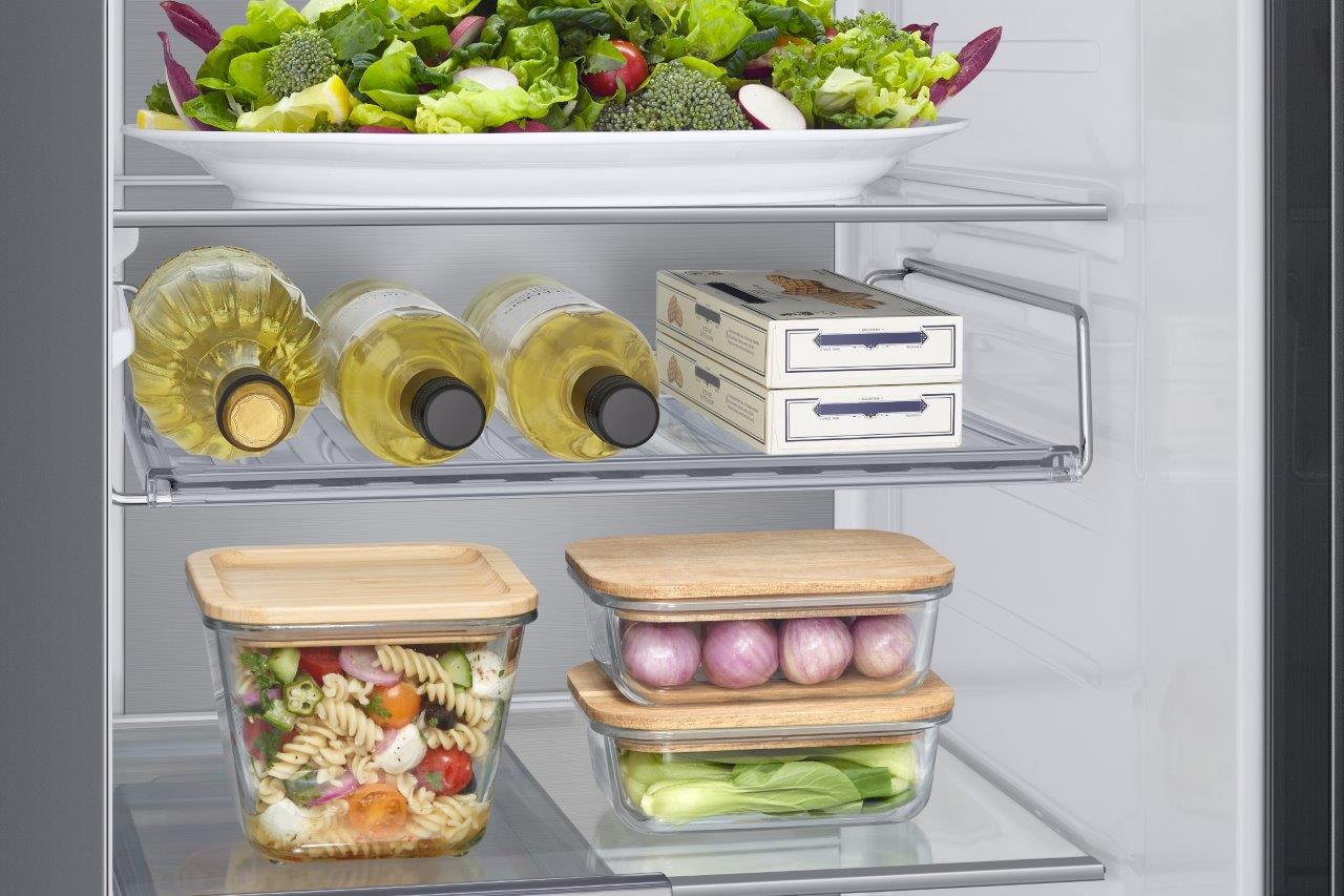 Pridobite več prostora brez zmanjšanja učinkovitosti. V nasprotju z običajnimi kanali je tanek hladilni kanal v zadnji steni popolnoma ploščat, kar zmanjšuje neuporaben prostor in ustvarja več prostora za shranjevanje živil. Še vedno pa hladi in prezračuje enako učinkovito, zato vse ostane sveže in okusno.