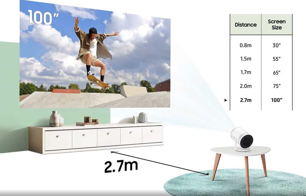 The Freestyle lahko projicira zaslone velikosti od 76,2 cm (30") do neverjetnih 254 cm (100"). Naredite si domači kino z zasloni do 254 cm (100").
