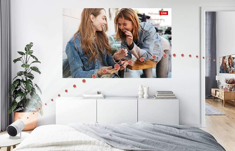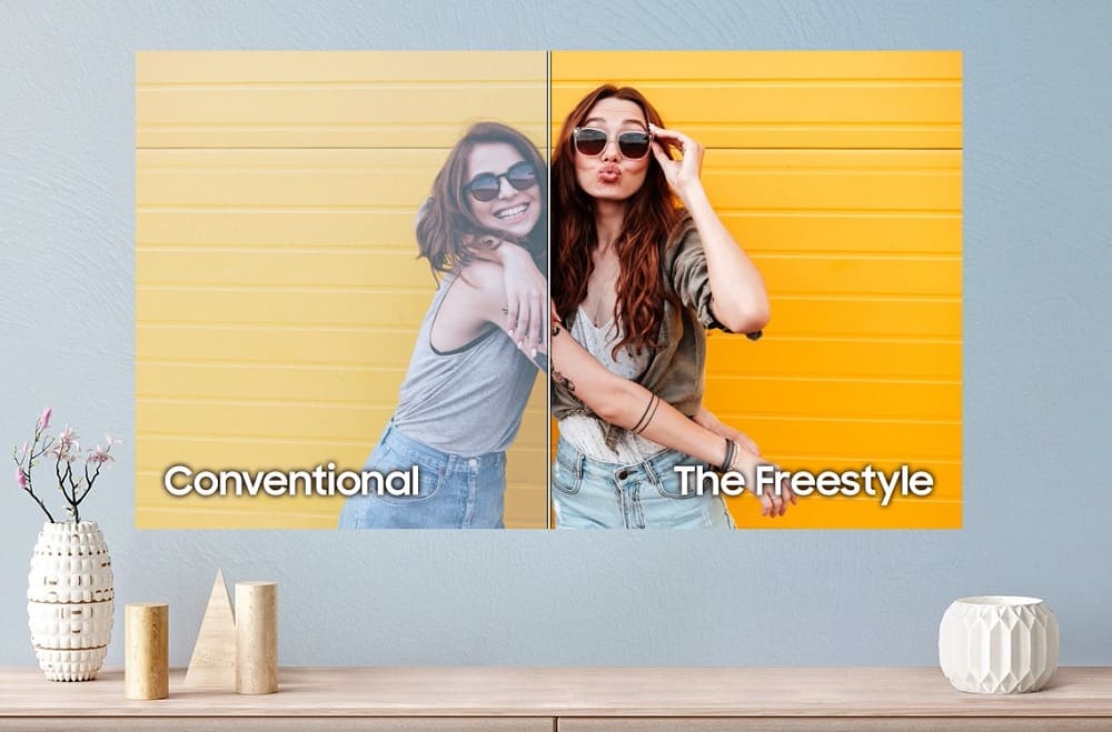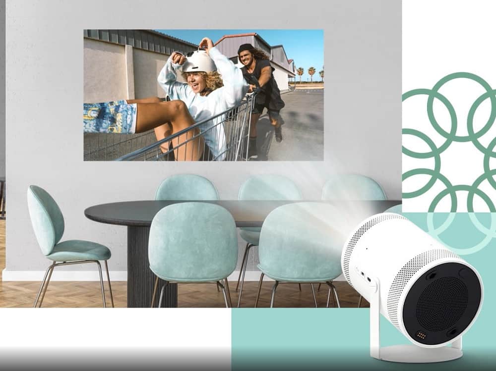 Kompaktna oblika. Spoznajte The Freestyle. Vse, kar si želite od pametnega projektorja v eni kompaktni obliki.