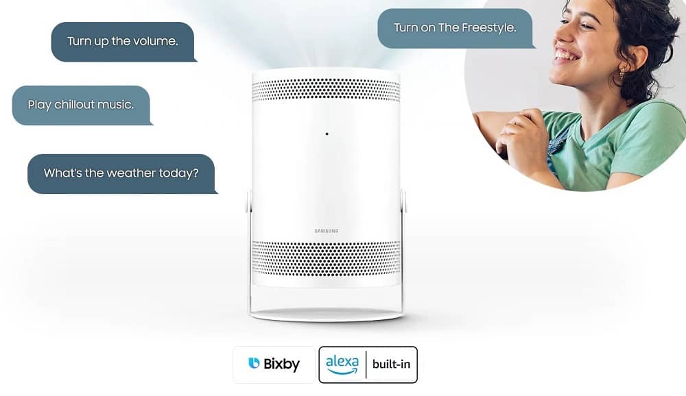 Preprosto povejte, kar želite. Z vgrajenimi glasovnimi pomočniki Samsung Bixby in Amazon Alexa lahko The Freestyle projektor upravljate s svojim glasom.