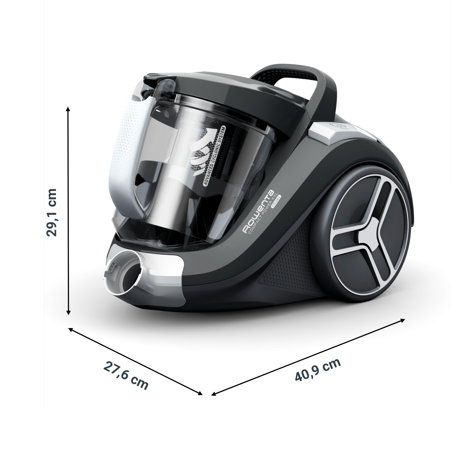Rowenta Compact Power XXL sesalnik brez vrečke, motor z nizko porabo, največ do 900 W, napredna ciklonska filtracija na 3 nivojih, XXL zbiralnik za prah z volumnom 2,5 l, kompakten dizajn, parket + komplet, RO4B36EA