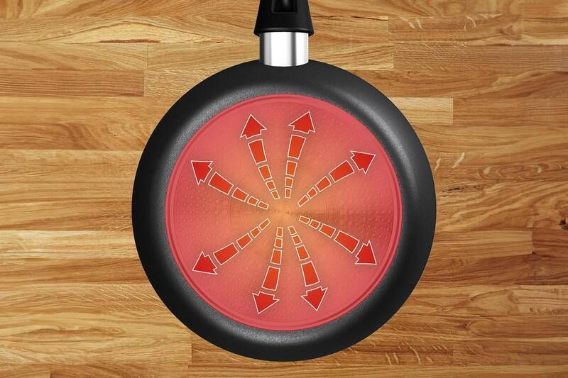 Tefalovo dno Thermo-Fusion™ zagotavlja hitro in optimalno porazdelitev toplote po celotni površini ponve za okusne jedi, pripravljene do popolnosti.