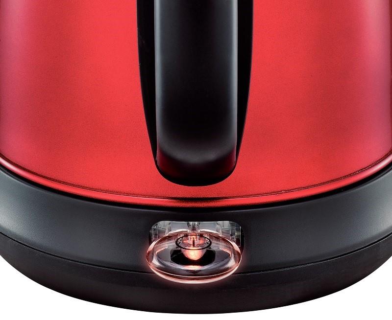 Dodatno | Vrtljivo podnožje, skrit grelni element iz nerjavečega jekla, odstranljiv filter za vodni kamen, pokrov s tečajem in zaklepom, kontrolna luč, zaščita pred suhim vrenjem, samodejni in ročni izklop, shranjevalnik kabla, kazalnik nivoja vode |