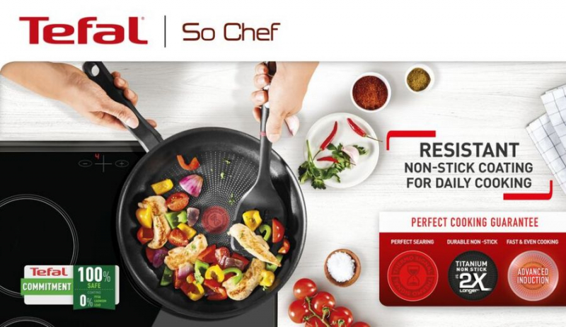 Zaradi vrhunske tehnologije se ponve Tefal uvrščajo med odlično posodo tako po vzdržljivosti kot po okusnih rezultatih.Grill ponev Tefal So Chef E2334055 s premerom 26 cm je oblikovan tako, da olajša vsakodnevno kuhanje - tudi pri intenzivnejši uporabi.