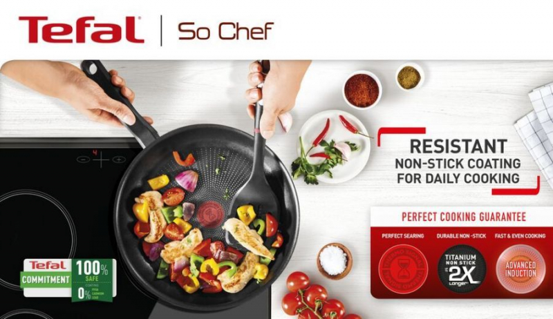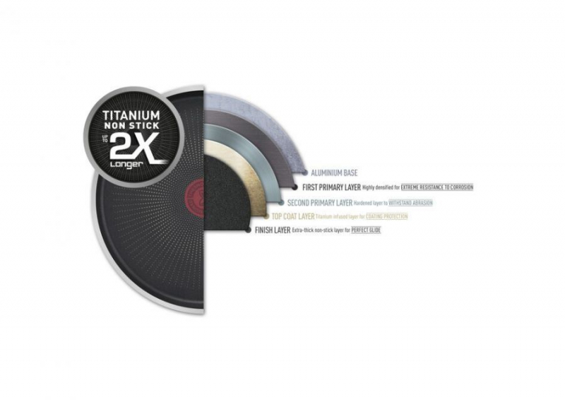 Izjemno trpežna obloga proti prijemanju v bistvu drži dvakrat dlje kot obloga Tefal Titanium standard, kar olajša tako kuhanje kot čiščenje.