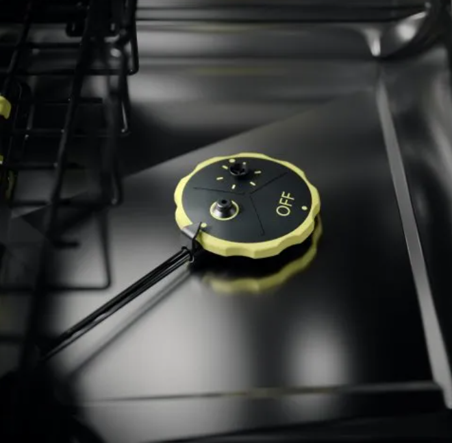 Da bi bil že tako zmogljiv čistilni sistem še močnejši, smo ustvarili dve nastavljivi »coni moči« z dvema različnima vzorcema pršenja. Coni moči proizvajata bodisi koncentriran močan curek pod visokim pritiskom za dodatno moč pomivanja visokih, ozkih predmetov, kot so steklenice in vaze, bodisi širši curek za večje posode, lonce in ponve. Na voljo je tudi »premostitvena funkcija«, pri kateri sta obe coni moči nastavljeni na način širokega pršenja za zelo velike posode ali pripomočke. Coni moči se upravljata ročno, zato ju preprosto izklopite, ko ju ne potrebujete.