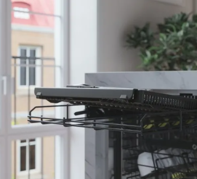Zgornji pladenj za jedilni pribor in kuhinjske pripomočke je enostavno odstraniti za lažje razkladanje. S širino 325 mm osrednji pladenj pušča dovolj prostora za visoke vinske kozarce v zgornji košari na vsaki strani pladnja. In z Instant Lift ™ lahko zgornjo košaro prilagodite na 40 ali 58 mm.