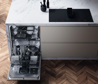 Naši popolnoma vgradni pomivalni stroji z mehanizmom za odpiranje s pritiskom so idealni za odprte minimalistične kuhinje, kjer subtilna vrata brez ročajev prispevajo k sodobnemu občutku vašega doma. Preprosto rahlo potisnete zgornji del vrat in mehanizem jih bo nato odprl. Funkcija za vaše udobje, ki ponuja tudi možnost lepe integracije pomivalnega stroja v vašo kuhinjo.